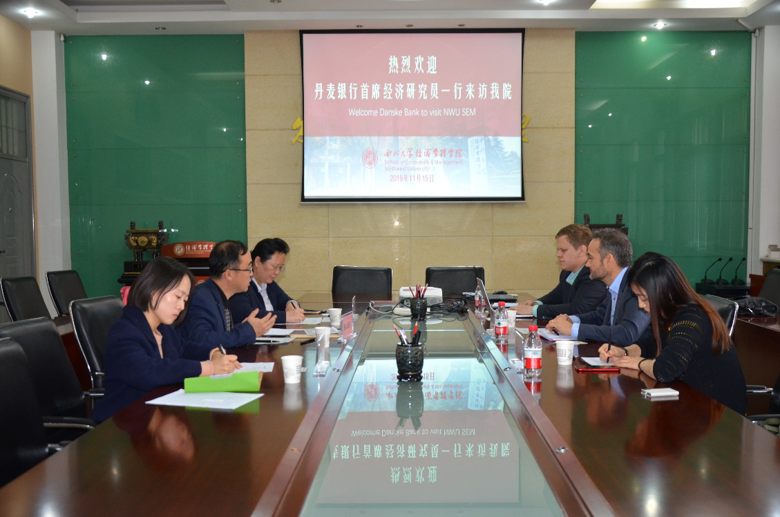 11月15日上午,丹麦银行首席经济研究员Allan von Mehren先生、北京代表处首席代表、大中华区负责人Mathias Severin Boyer先生、北京代表处研究分析员Adie Zhang女士一行来访我院,我院副院长师博教授、院长助理康蓉副教授及外事办公室毛丹阳老师参加座谈。