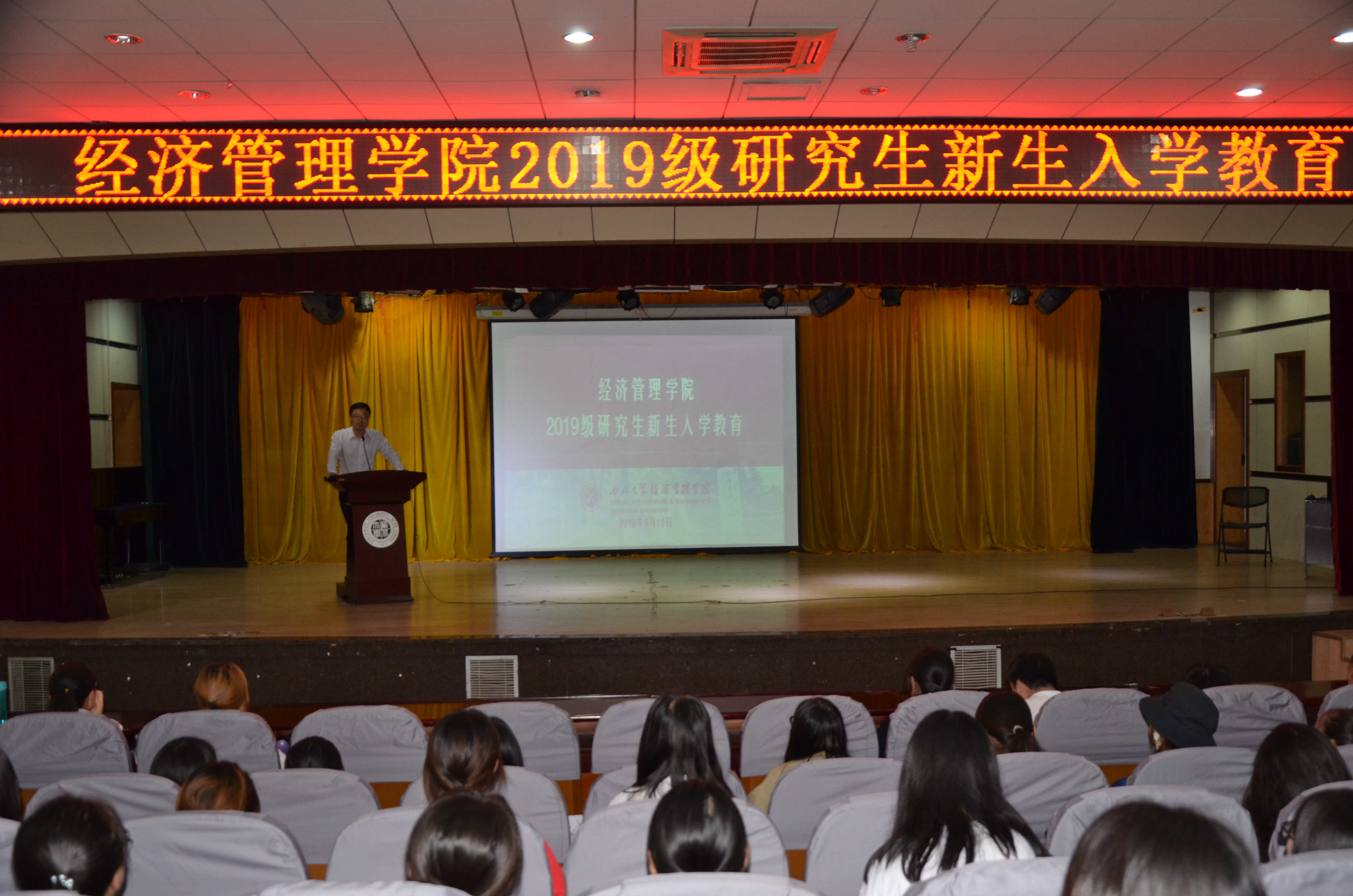 2019年9月11日下午,yl7703永利集团2019级研究生新生入学教育在长安校区多功能报告厅举行。yl7703永利集团副院长马莉莉教授、yl7703永利集团党委副书记赵金哲老师,2019年新任研究生导师及2019级全体研究生参加活动。