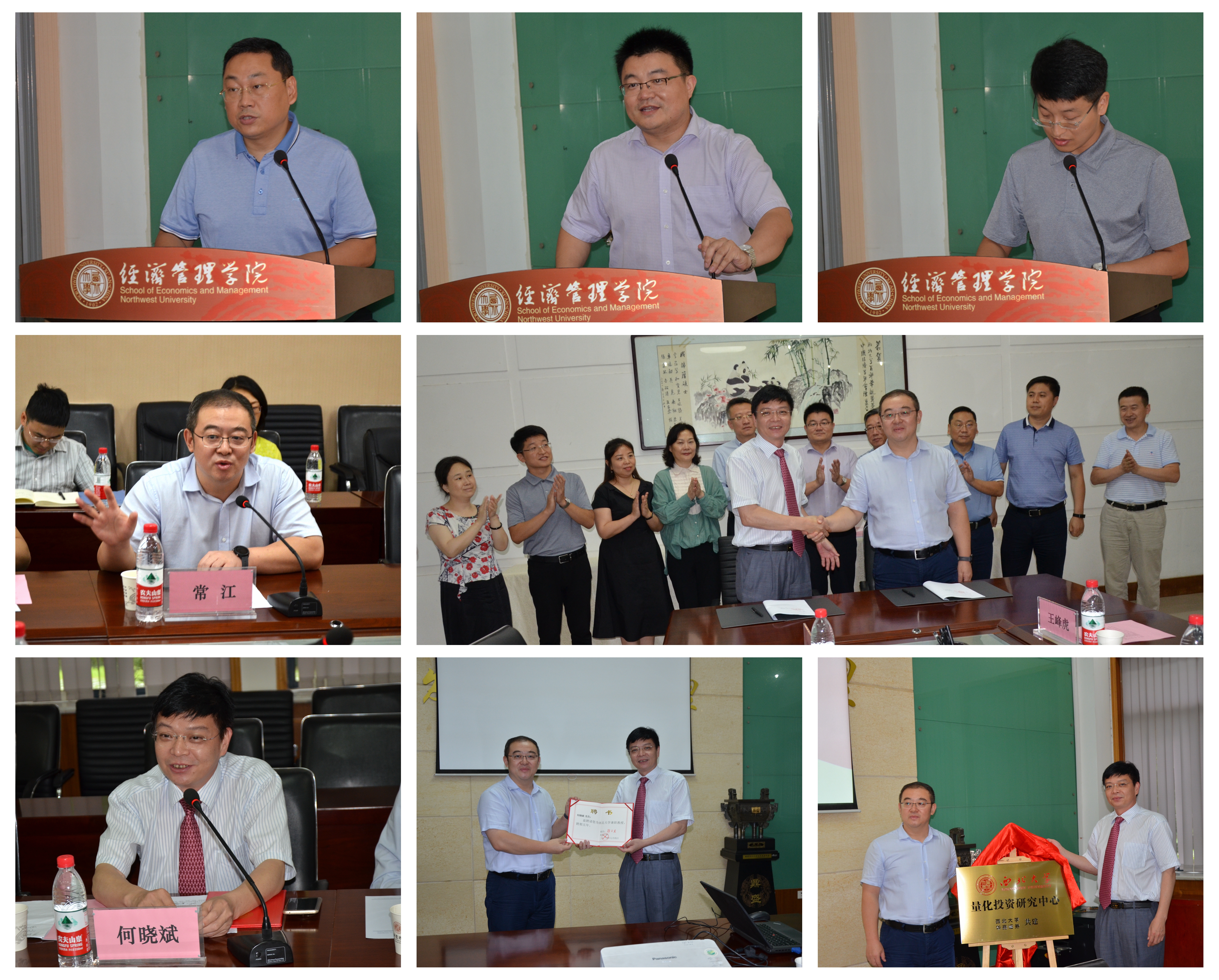 经管院吴振磊院长首先致欢迎辞,他对华鑫证券有限公司与我院开展产学研合作表示感谢。华鑫证券西安分公司金融科技负责人辛鑫介绍了产学研合作协议内容,常江副校长和华鑫证券首席经济学家何晓斌博士代表双方签约,并共同为yl7703永利集团量化投资研究中心揭牌,常江副校长向何晓斌博士颁发了yl7703永利集团兼职教授聘书。随后,华鑫证券首席经济学家何晓斌博士和常江副校长分别就如何落实产学研战略合作协议发表了讲话,双方一致认为要加大投入,认真落实协议,早出成果,构建互利共赢的长效合作机制。华鑫证券西安分公司联席总经理邱毅华、科技路营业部总经理孙俊萍、yl7703永利集团国内合作与校友工作处处长崔延力及金融系教师代表共同见证了签约仪式,并合影留念。
