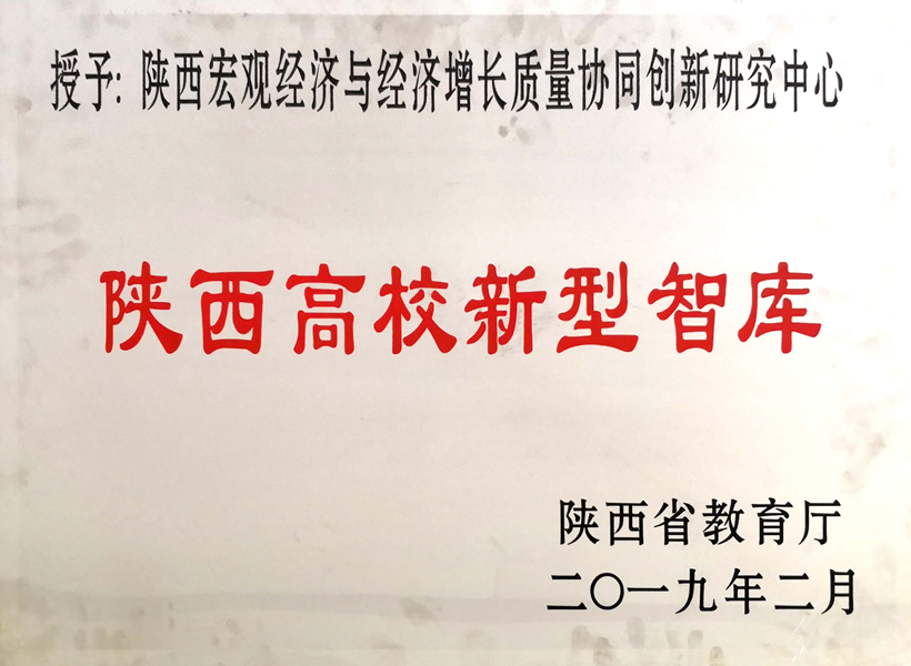 4月23日,2019年度陕西高等学校科技工作会议在陕西师范大学举行,陕西宏观经济与经济增长质量协同创新研究中心被授予陕西高校新型智库A类。