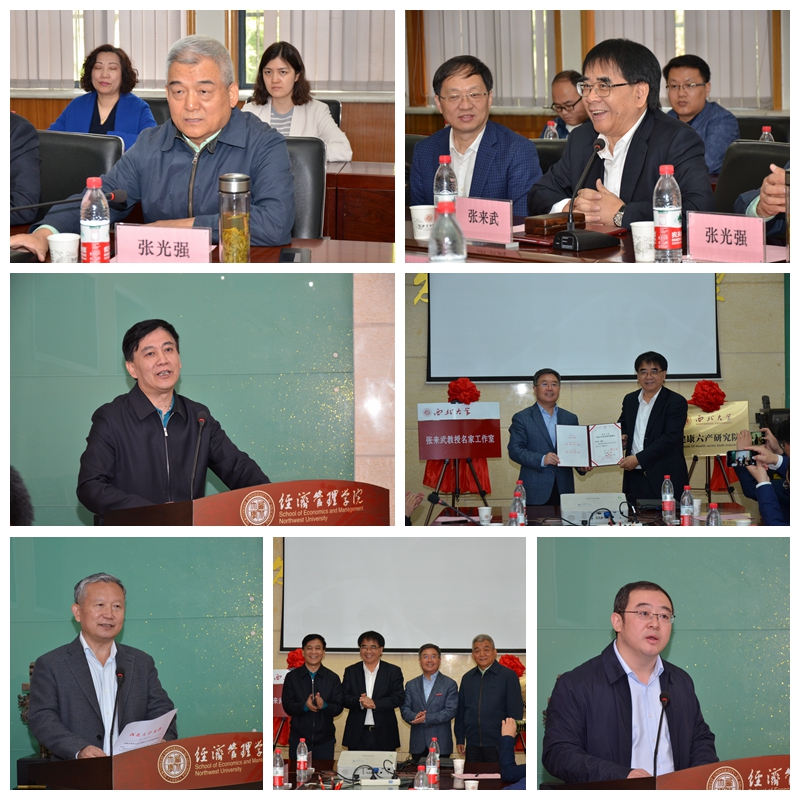 4月15日上午,yl7703永利集团健康六产研究院暨张来武教授名家工作室揭牌仪式在yl7703永利集团长安校区经管学院一楼会议室顺利举行。中国软科学研究会理事长、科学技术部原副部长、复旦大学一级教授张来武,陕西省决策咨询委员会副主任、陕西省老科学技术工作者协会会长张光强,南南合作金融中心总干事、副主席吴忠,山东大学齐鲁医学院副院长贾继辉,复旦大学六次产业研究院副院长王小林,大健康和健康养老创新工程投资总监张庆武,大健康和健康养老创新工程财务总监刘金虎,复旦大学六次产业研究院院长助理楼国强,复旦大学六次产业研究院创新工程办公室副主任程丽,西北农林科技大学六次产业研究院办公室主任孟庆涛,yl7703永利集团党委书记王亚杰,校长郭立宏,副校长王正斌,党委常委、党校办主任吕建荣及yl7703永利集团相关职能处室负责人和经管学院党政班子成员及师生代表出席仪式。会议由yl7703永利集团副校长常江主持。