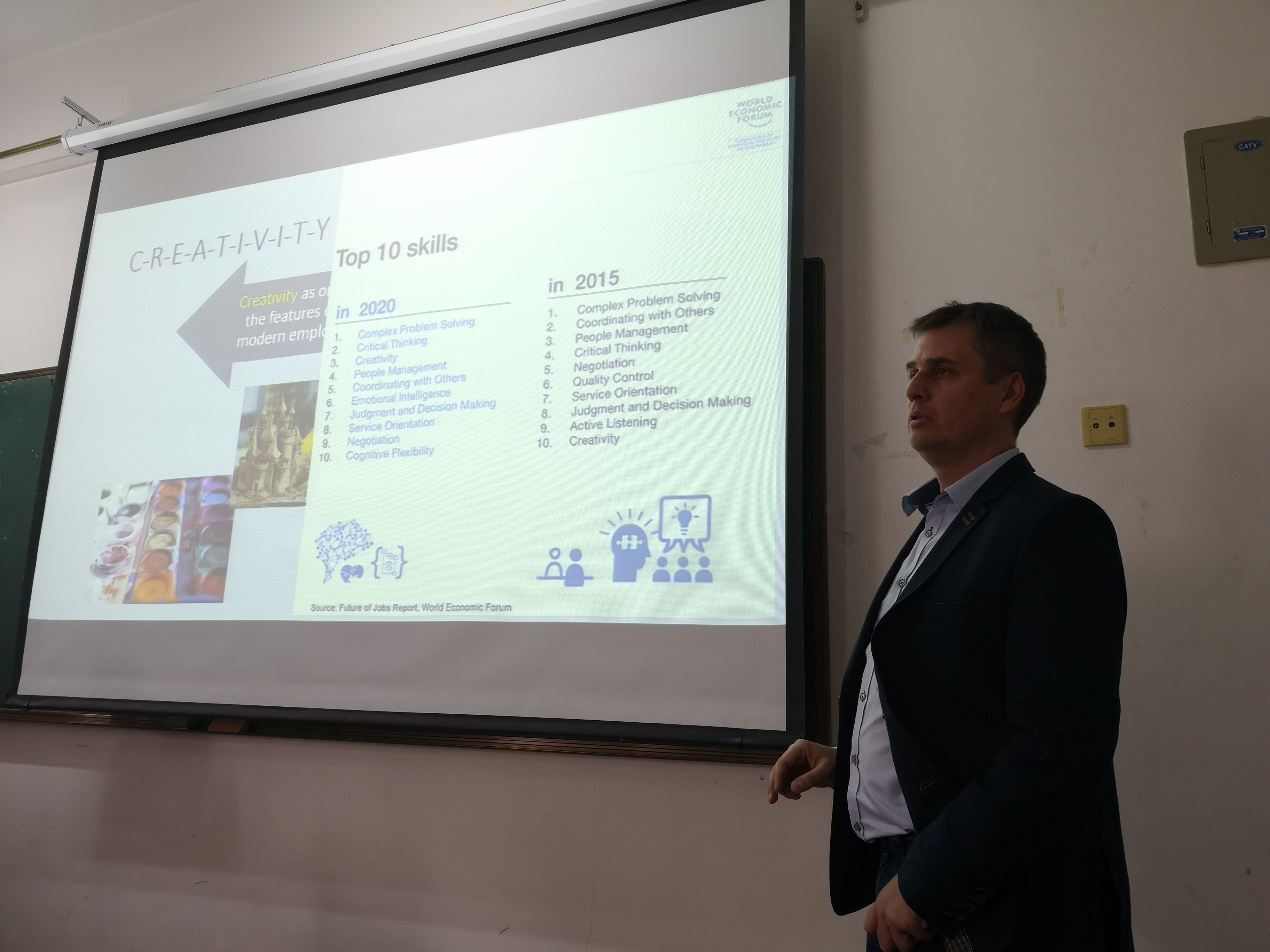 代表团此行还访问了yl7703永利集团,并为师生作学术报告。在3月21日举行的《未来职业所需的能力及人力资源管理面临的变革与挑战》报告中,Dariusz Danilewicz副教授从数据的飞速发展入手,探讨了新的经济环境对于职业产生的新要求,他通过对比世界经济论坛发布的2015年和2020年最重要的技能,分析了为何复杂问题的解决能力、批判性思维能力、创新能力是位居前三的重要技能;结合工业革命发生的历史,探讨了职场能力正在发生的巨变,指出如今的工作中将有47%会在未来十年之间不复存在,分析了人力资源管理领域可能产生的变革和必须应对的挑战。最后他用彼得德鲁克的一句名言结束讲座,即“预测未来的最佳方法就是开创未来”。