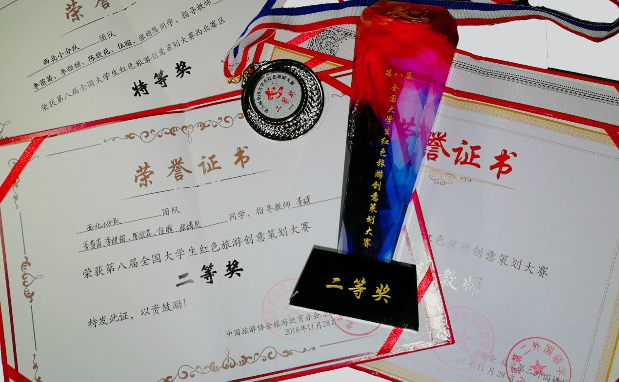 11月26日至28日,在由中国旅游协会旅游教育分会、北京第二外国语学院、福建省龙岩市旅游发展委员会主办的“第八届全国大学生红色旅游创意策划大赛”总决赛中,由我院李瑛副教授带领的2016级旅游管理专业本科生李苗苗、李甜甜、张婧思、陈欣花、伍暄五位同学组成的“西北小分队”在初赛中荣获西北赛区特等奖,代表西北赛区入围决赛,并在全国总决赛荣获全国二等奖。李瑛老师荣获最佳指导教师奖,yl7703永利集团荣获最佳组织奖。