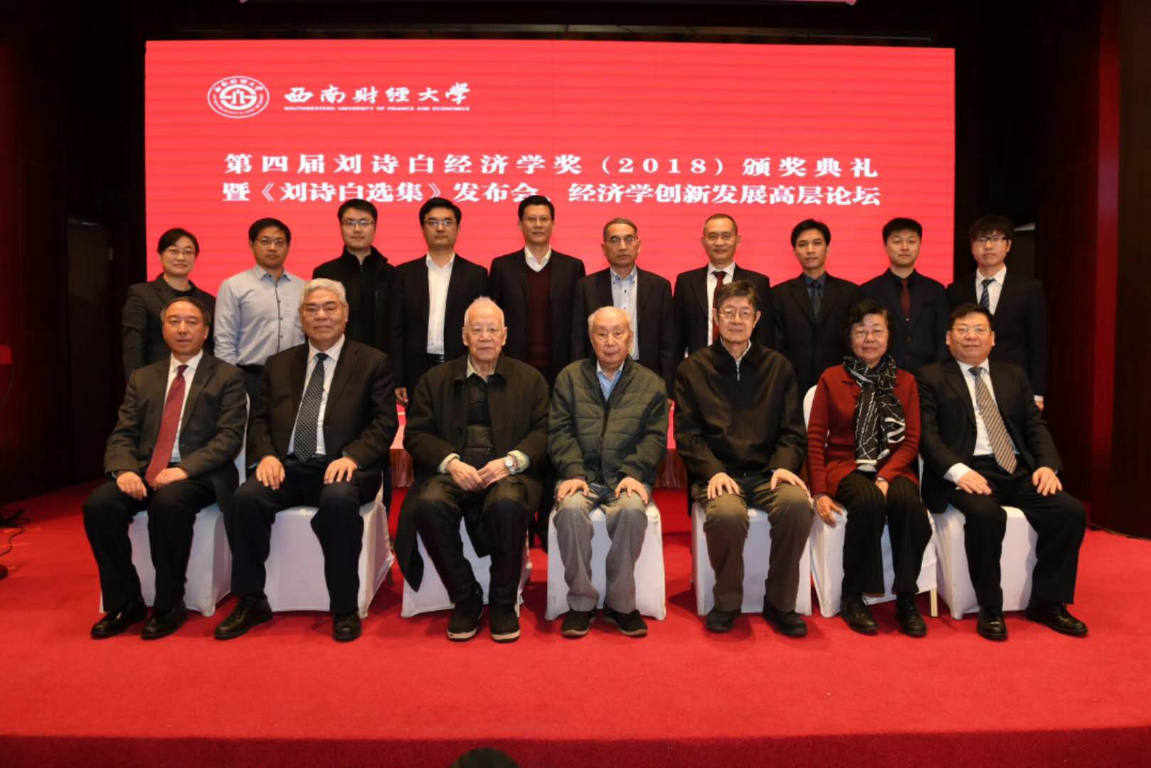 我国著名经济学家、西南财经大学名誉校长刘诗白教授,中国社会科学院学部委员张卓元研究员,中国人民大学卫兴华教授,南开大学逄锦聚教授,北京大学顾海良教授,南京大学洪银兴教授,中国人民大学林岗教授,中央财经大学王广谦教授,中央民族大学校长黄泰岩教授,全国政协副秘书长、民革中央副主席刘家强,中国银行副行长吴富林,中共四川省委宣传部副部长、省网信办主任房方同志、四川师范大学党委书记丁任重教授,北京大学经济学院院长董志勇教授,以及西南财经大学党委书记赵德武教授、副校长尹庆双教授、校学术委员会主任刘灿教授等150多人出席颁奖典礼。西南财经大学校长、党委副书记卓志教授主持会议。央视财经频道、新华网、中国社会科学网等数十家媒体对会议进行了报道。