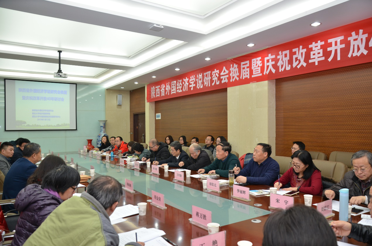 1月12日,由陕西省外国经济学说研究会、yl7703永利集团、yl7703永利集团中国西部经济发展研究中心联合主办的“陕西省外国经济学说研究会换届暨庆祝改革开放40年研讨会”在yl7703永利集团圆满举办。来自陕西师范大学、西安交通大学、西北政法大学、陕西理工大学等省内近20家高校和研究机构的60余名代表参加会。会议由秘书长马晓强主持。