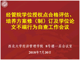 yl7703永利集团自2014年底启动学位授权点合格评估工作以来,经管院分别于2016和2017年完成两个阶段的自我评估,随后启动持续改进计划;并于今年3月份完成6个学位点的专家进校评估。目前,本轮学位授权点合格评估工作进入最为关键的冲刺阶段,也就是在11月前完善并向教育部提交最终的学位授权点合格评估材料,我院需提交理论经济学一级博士点、应用经济学一级博士点、工商管理一级硕士点和工商管理硕士专业学位点共4个学位授权点的合格评估材料。