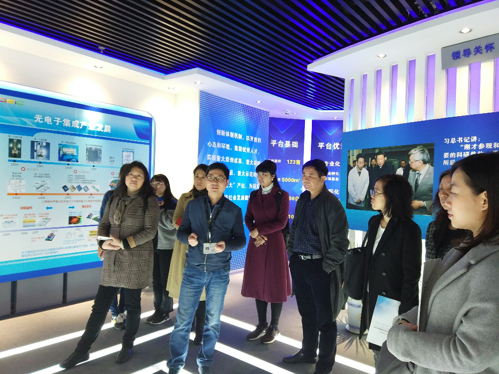 此次行程中,产业科技处黄敏经理为我院师生一行讲解西光所沙盘模型图及西光所的历史背景,了解西光所的发展渊源。在西安光机所科技成果展示中心,资产处曹主任为大家详细介绍了西安光机“硬科技”、“拆围墙”、产学研用理念以及平台建设、人才引进、模式创新等,并展示已有科技成果,同时对我院师生提出的平台建设、模式创新等问题进行详细解答。随后师生一行来到先导院,在侯宏斌主任的讲解以及对我院师生相关问题的详尽解答中对以光电子集成电路为发展方向、政产学研资用为理念的先导院、光电子领域的最新成果以及我国光电子产业发展有了更详细的认识。此次参观调研活动使我院管理类师生了解了西安光机所在研发和成果转化方面的先进理念和做法,有利于我们后续开展创业创新方面的研究。