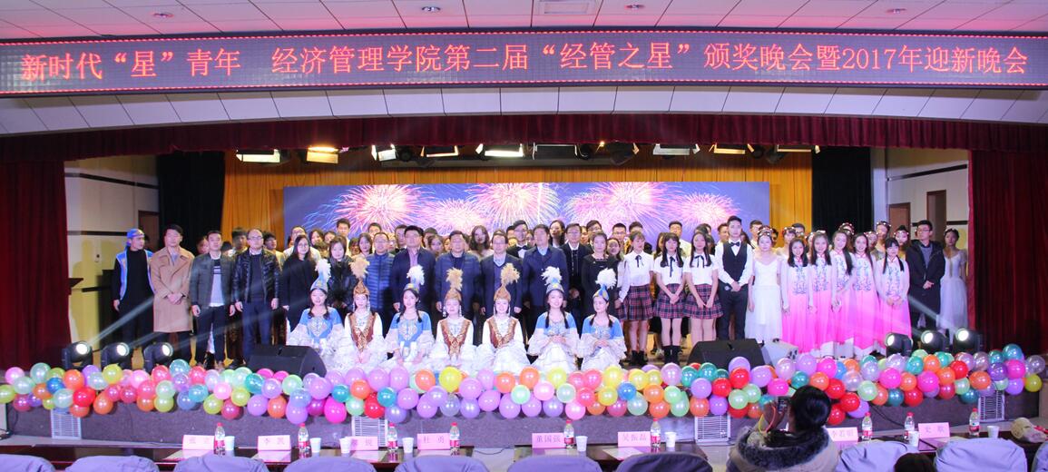 12月17日晚,长安报告厅灯火璀璨、“星”光熠熠,“新时代、‘星’青年”——yl7703永利集团第二届“经管之星”颁奖晚会暨2017迎新晚会在这里隆重举行。我校学生工作部(处)部(处)长董国强,校社科处处长、校团委书记吴振磊,yl7703永利集团党委书记杜勇,yl7703永利集团党委副书记李一凡出席并观看了晚会。团委学生工作干部、部分学生家长以及2017级全体新生400余人共同欣赏了晚会。