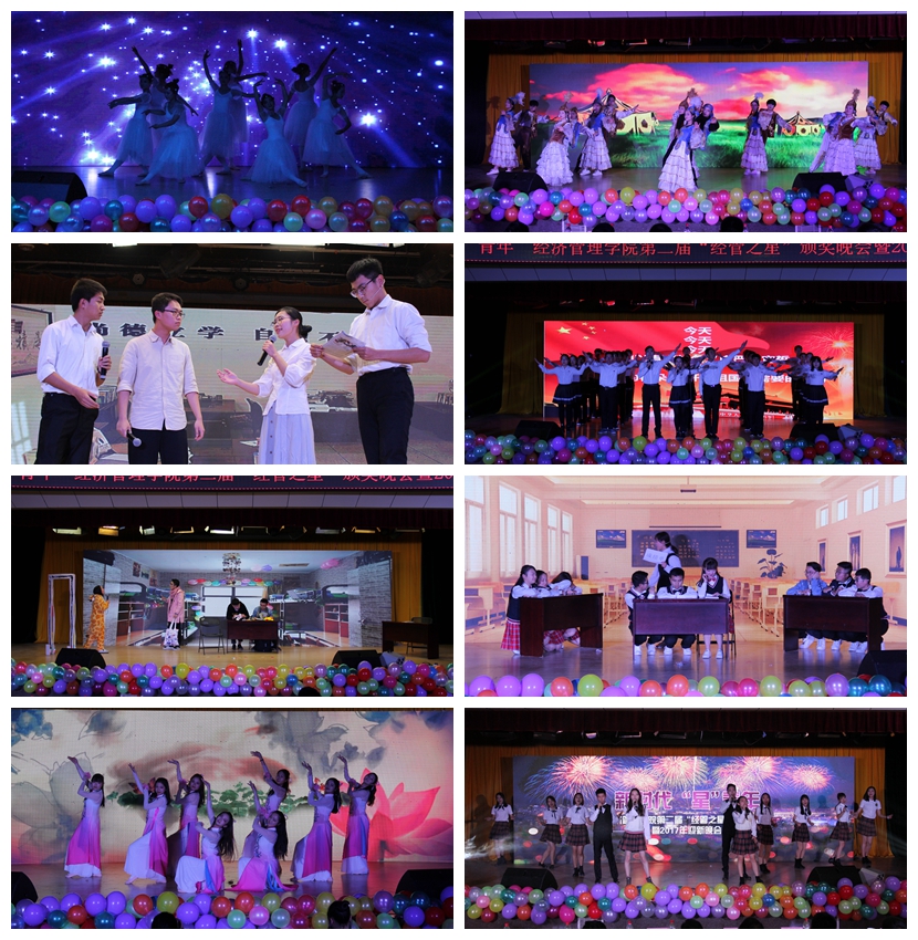 晚会的八个节目紧扣学习宣传贯彻党的十九大精神主题,通过舞蹈、小品、歌曲、朗诵、情景剧、音乐剧等形式多样、主题鲜明、内涵深远、内容丰富的节目集中反映了经管学院党委学习宣传党的十九大精神和贯彻落实中、省思政会议的特色成效。开场舞《小星星》突出晚会表彰的新时代“星”青年;哈萨克族舞蹈《黑走马》气势磅礴,展现了学院少数民族学生昂扬向上的精神风貌;情景剧《为钱正名》回顾了经管学院校友、著名经济学家张维迎教授在yl7703永利集团求学时期学术探索的励志故事;诗朗诵《青春的誓言》诵出了经管学子的青春愿景,歌颂了一代代经管人开拓创新的光辉历程,展现了西大经管人风雨昂首、志在蓝天的气魄;小品《千万别忘锁门》聚焦校园安全,提醒广大学子防止宿舍日常安全隐患;音乐剧《小幸运》演绎了西大学子在高中努力奋斗,进入西大接受荣校荣院教育,恪守西大“公诚勤朴”校训的故事,展示了经管学子对西大的爱与热情;舞蹈《采薇》演绎出了气质端凝、素衣荆钗的古典之韵;歌曲《We Are Young》唱出了经管学子在新时代的青春愿景,表现了当代大学生激扬的青春力量,将晚会推向了高潮。全场观众热情欢呼,伴随着音乐的律动,尽情释放经管青年在新时代对未来的无限向往。