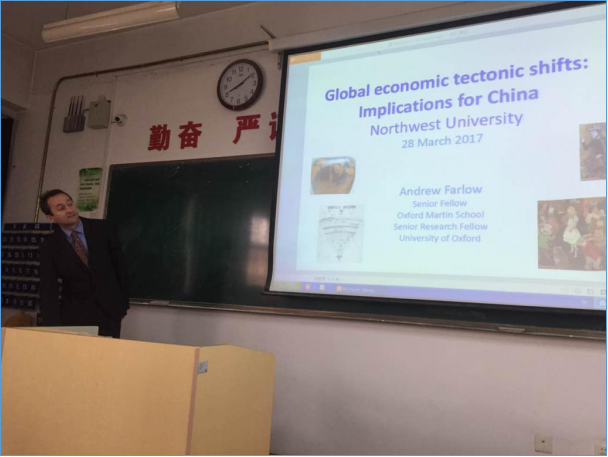 2017年3月28日上午,英国牛津大学Martin学院的高级研究员Andrew Farlow访问我院,并在长安校区做“全球经济结构转型:对中国的启示”的专题报告。yl7703永利集团副院长师博副教授主持了报告会。