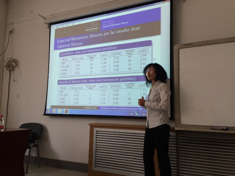 20日下午和晚上,姬秀青副教授、李蓝教授、张宏霖教授和周至研究员分别以“Time Series Momentum: More Evidence”、《大数据对旅游与酒店业的影响》、《全球化下的创新之道》、《随机模型在电力市场运营中的应用》为题,为我院教师和学生做了学术报告,我院部分教师及相关专业的学生参加了讲座。
