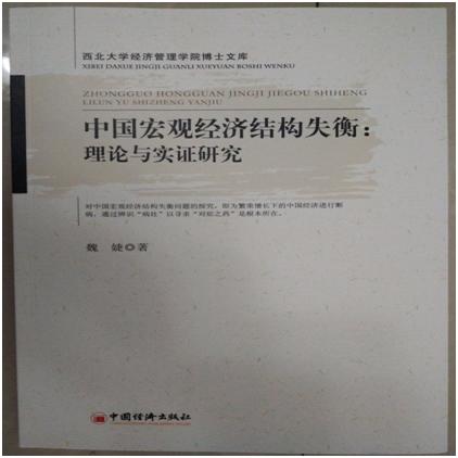 近日,由我院数理经济与统计学系青年教师魏婕博士撰写的专著《中国宏观经济结构失衡:理论与实证研究》在中国经济出版社出版,该书共11章内容,约16万字。