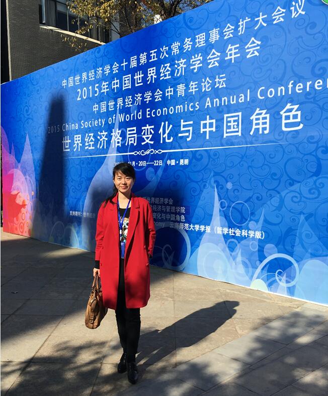 11月20-22日,2015年中国世界经济学年会暨中青年论坛在昆明云南师范大学召开,我院世界经济与贸易系马莉莉教授的论文入选并应邀参加了本次年会。此次大会以“世界经济格局变化与中国角色”为主题,来自中国社科院、清华大学、中国人民大学、南开大学等各大科研院所及《世界经济》、《国际经济评论》等经济类期刊媒体的300多位专家学者出席了会议。
