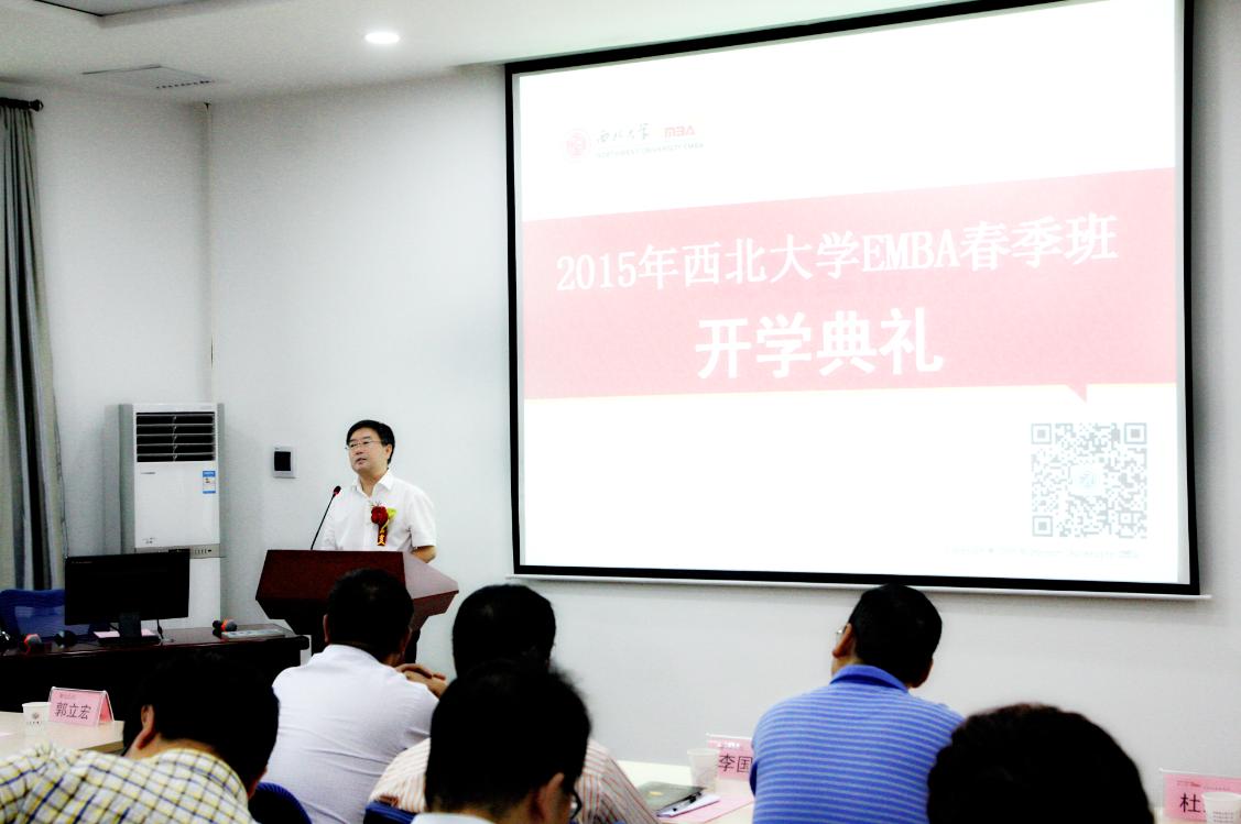 近日,yl7703永利集团2015EMBA春季班开学典礼在太白校区隆重举行。校长郭立宏教授,校研究生院副院长李军,经管学院党政班子成员、各系(各中心)主任、院长助理、老师代表和各教学点负责人出席了活动。典礼由EMBA中心主任杜丽萍主持。