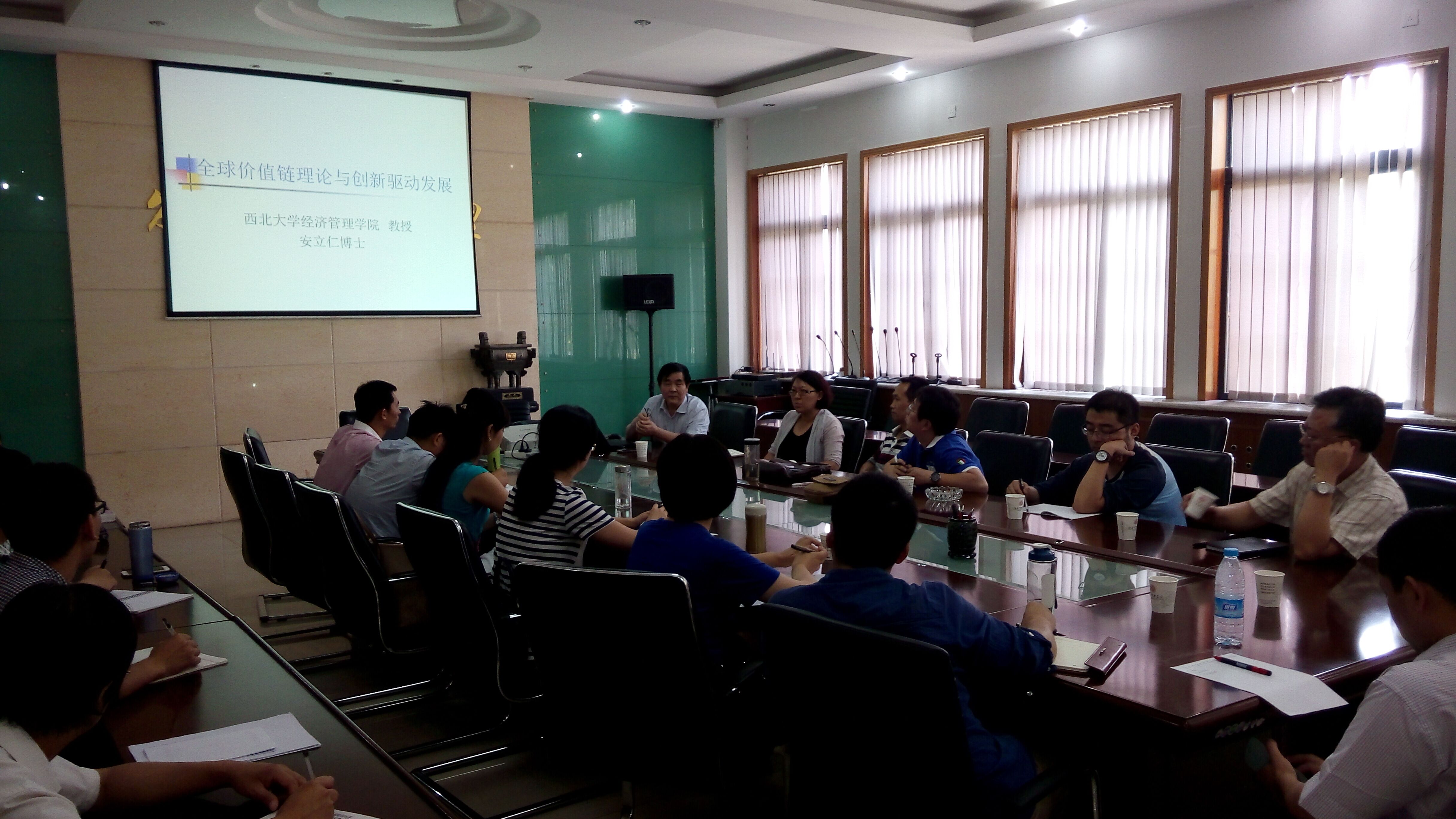 惠宁教授组织我院青年教师和博士生、硕士生就全球价值链理论与创新驱动发展的相关问题展开热烈地讨论。