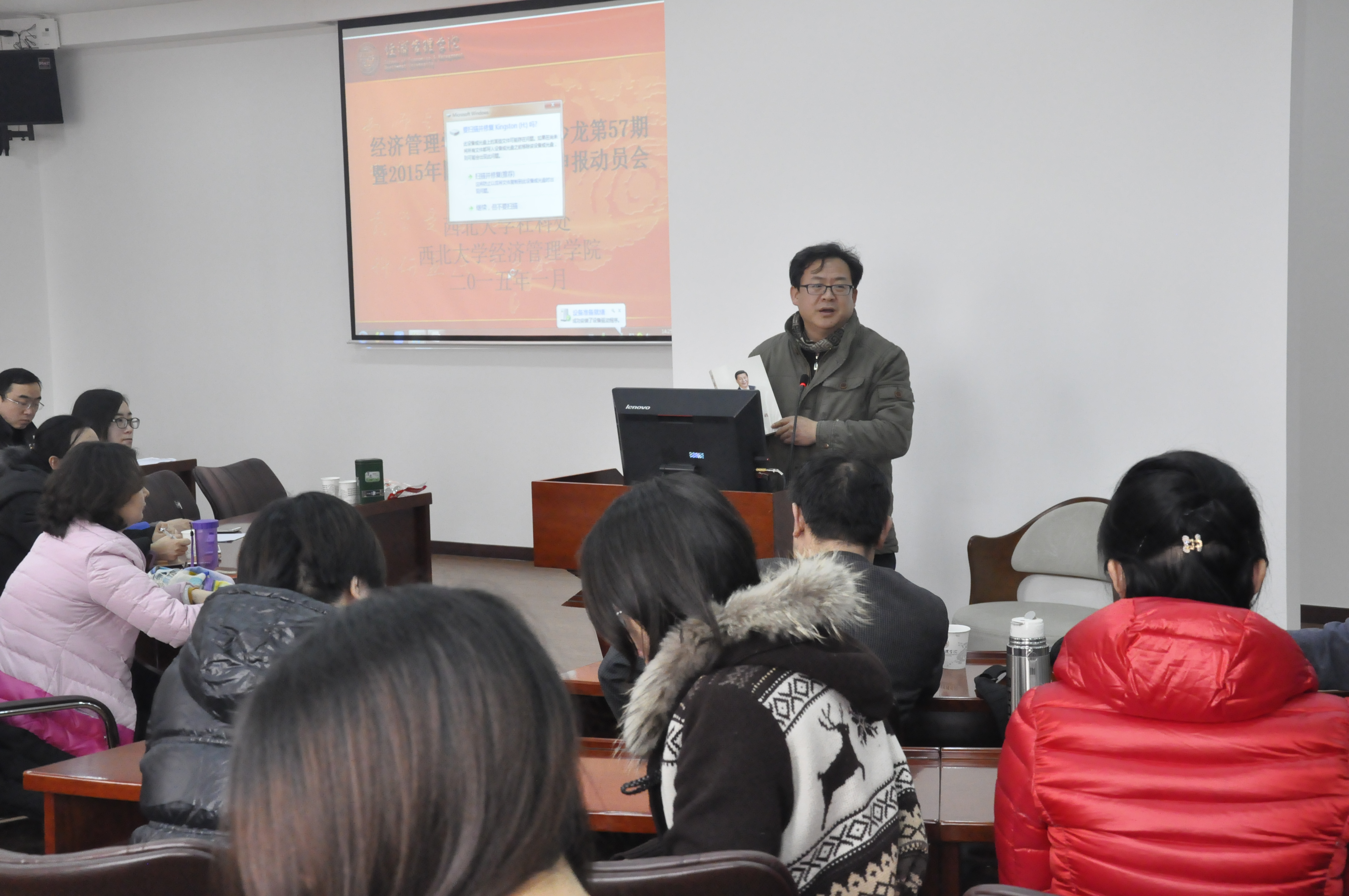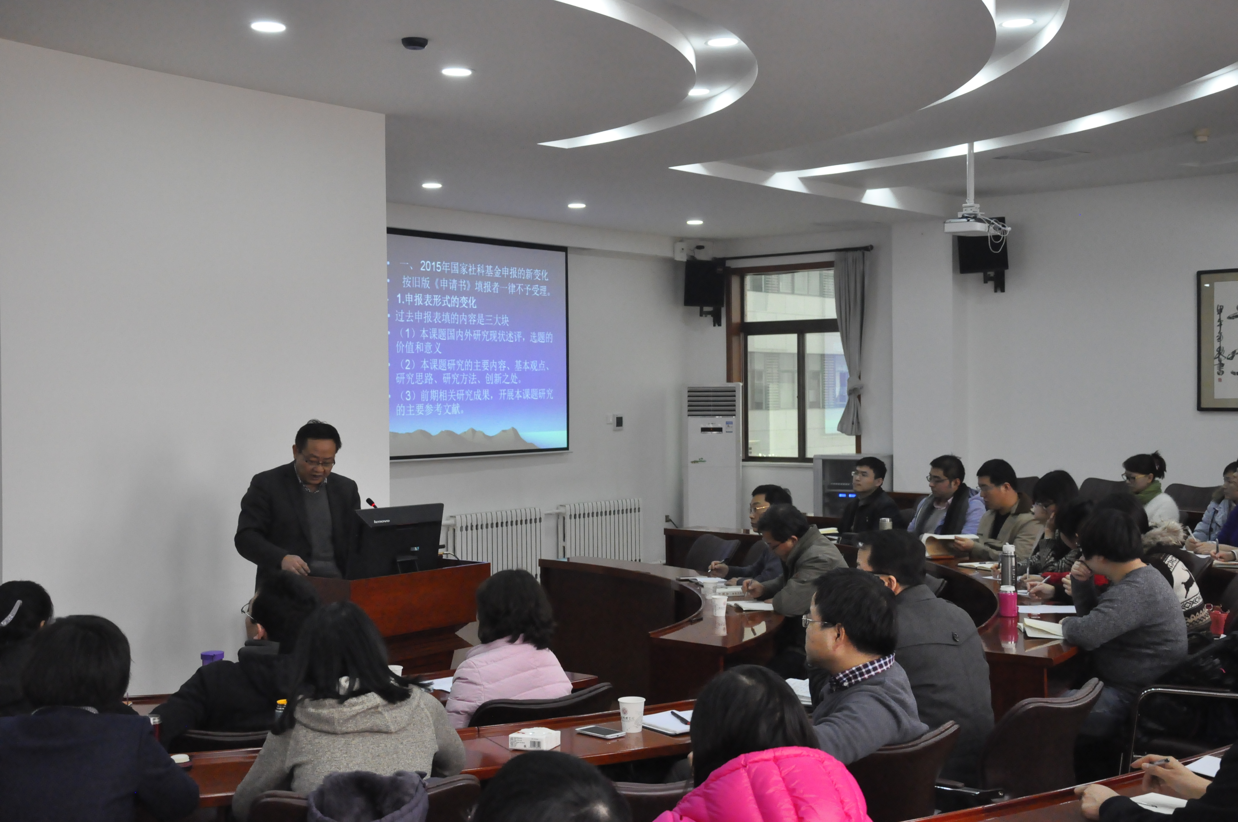 1月14日下午,由社科处和yl7703永利集团联合举办的“2015年国家基金项目申报动员会”在太白校区9号楼EMBA中心举行。本次活动由yl7703永利集团社科处和yl7703永利集团联合举办,社科处刘丰处长、yl7703永利集团任保平院长出席并发言,yl7703永利集团70余名教师参加了本次会议,活动由杜勇副院长主持。本次活动也是yl7703永利集团教师学术沙龙2015年第1期(总57期)。
