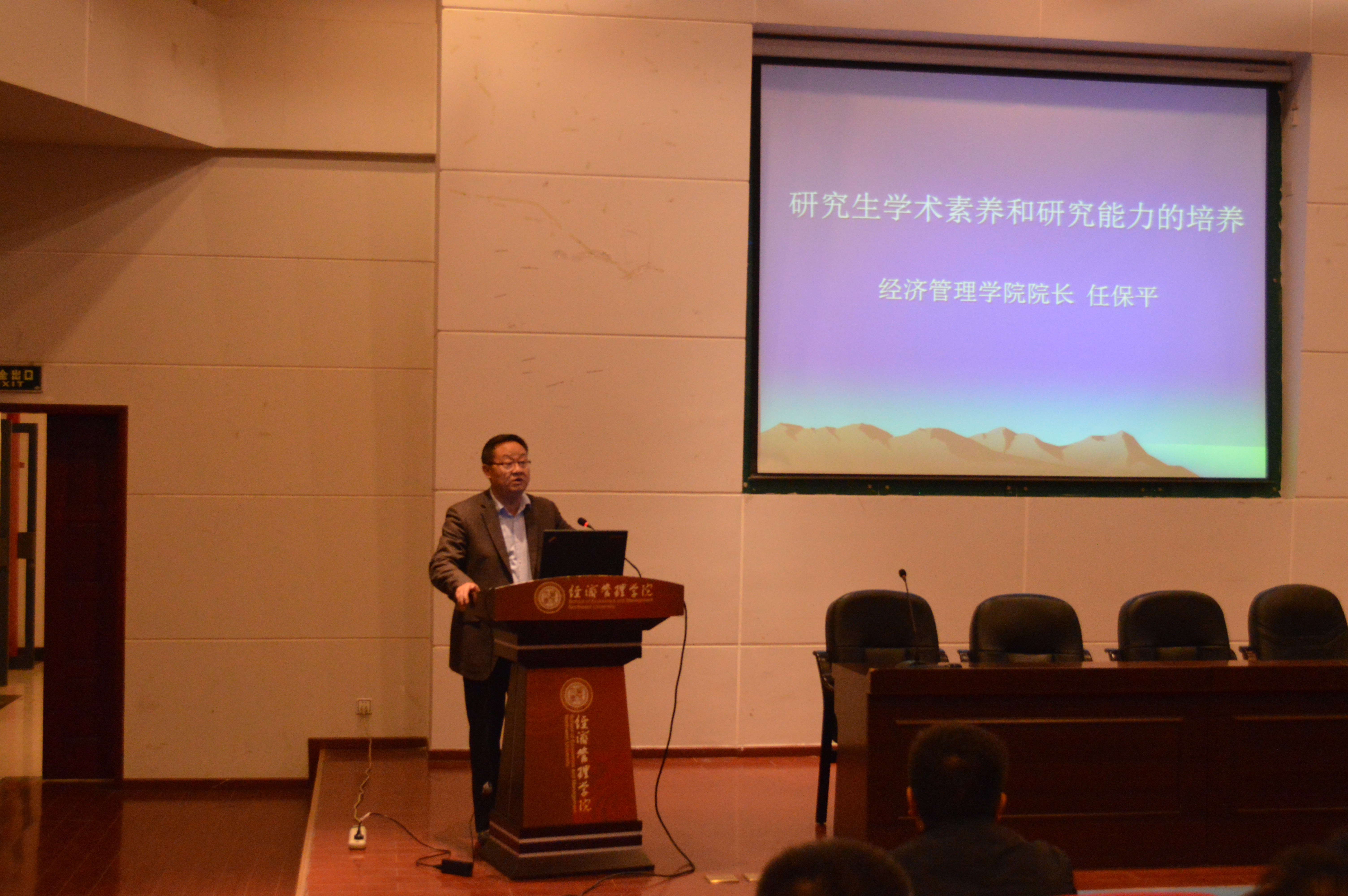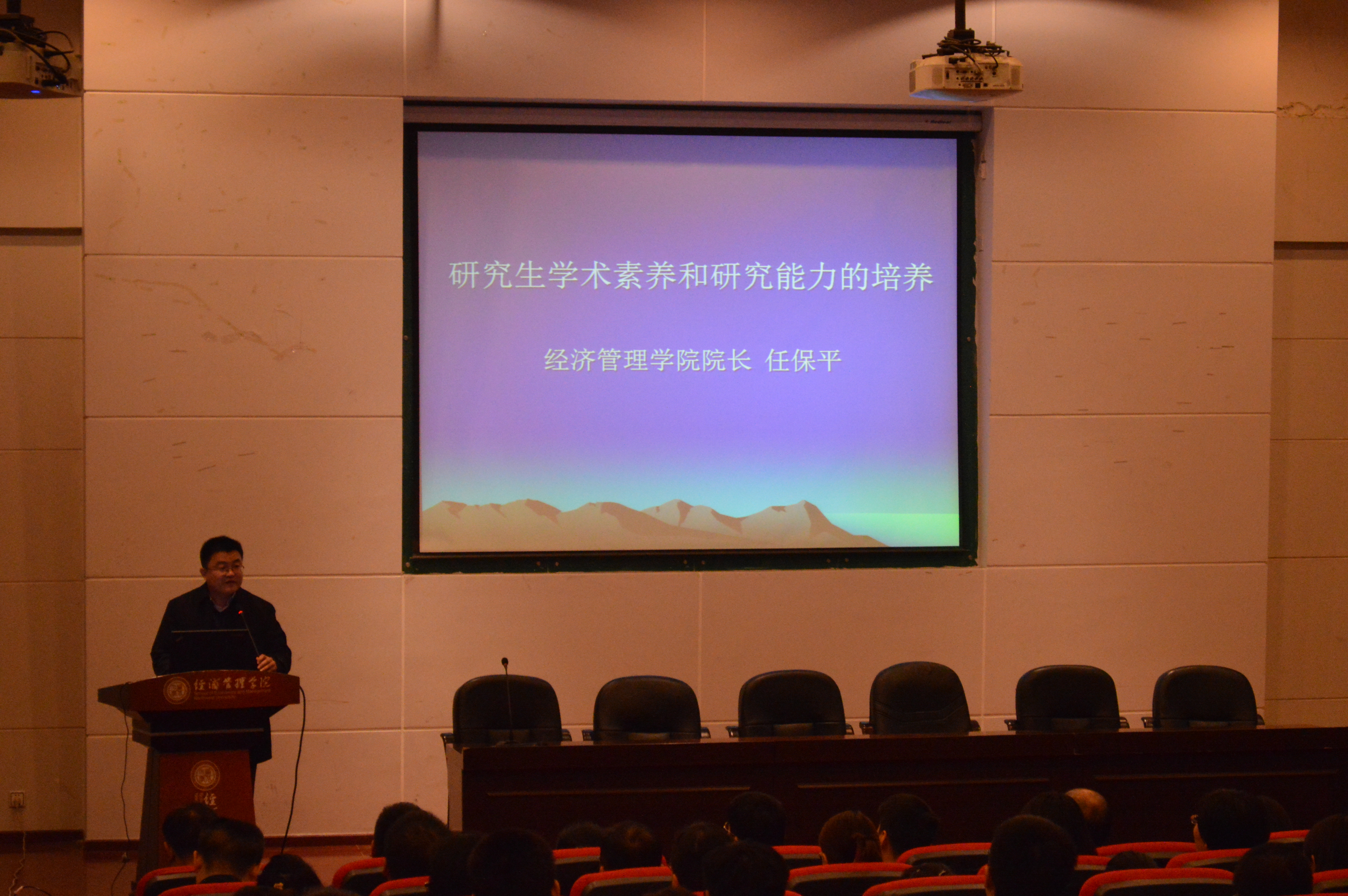 任保平教授从当前学术研究领域存在的问题出发,指出了研究生学术素养与研究能力培养的重要性。接着从培养目标、学习特点、学习要求、学习方式和学习目的等方面详细阐述了研究生与本科生的区别,强调研究生要做好从学习到研究的目标转变,进入到专门的领域中,以学术为核心,对问题要有自己的见解。随后,任保平教授从“五大意识+一个态度+一个规范”的思路上阐明了研究生学术素养的基本要素。鼓励大家在研究生阶段的学习生活中,要时刻注重培养自己的批判意识、大问题意识、工具意识、文献意识和人文意识,要以勤奋的态度去钻研学术问题,并在逻辑层面、方法层面和形式层面上严格遵守学术规范。任院长结合自身担任研究生导师的经验,从经典著作阅读、加强学术交流和导师团队等六个方面指明了研究生学术能力培养的路径。