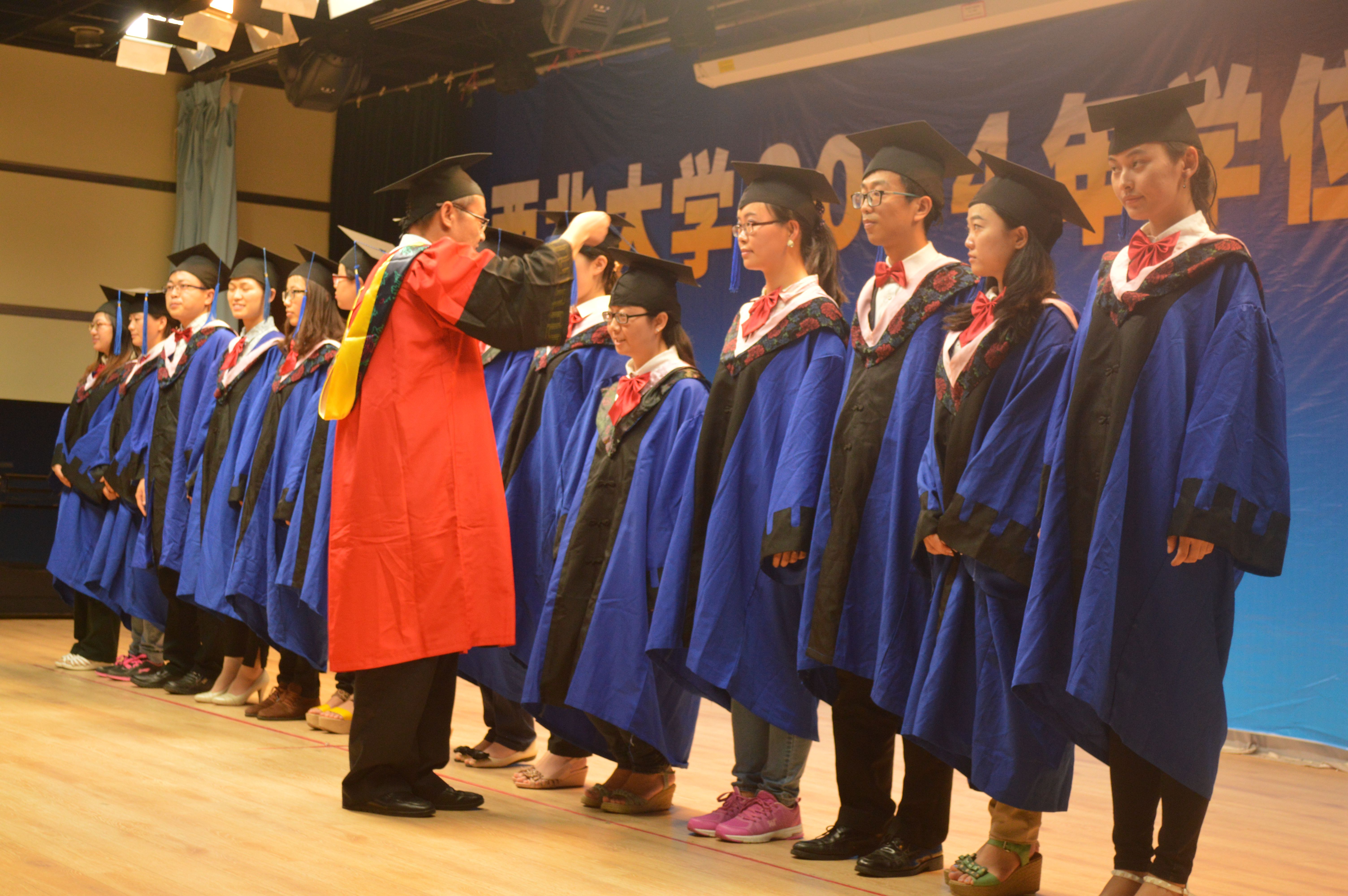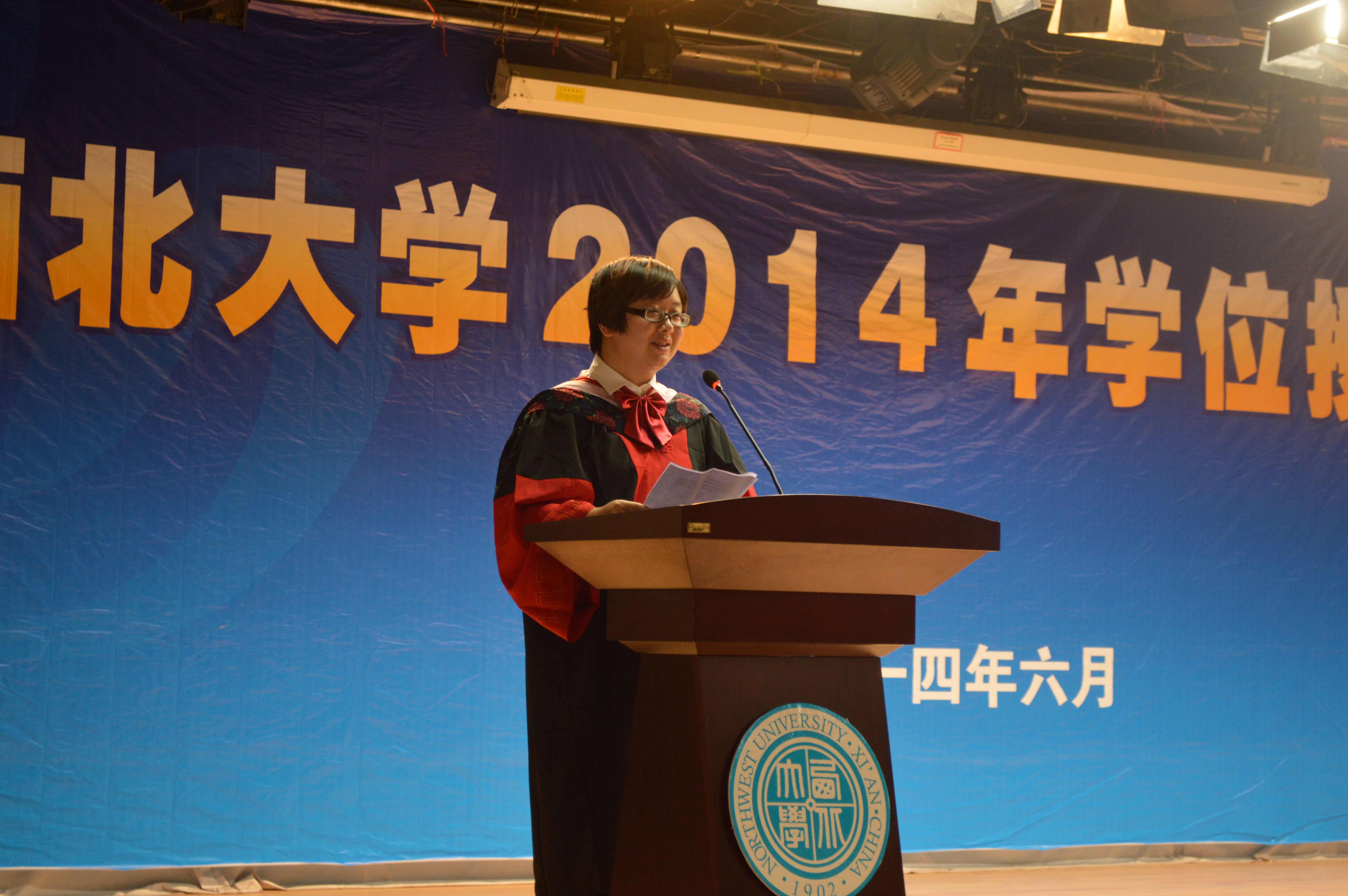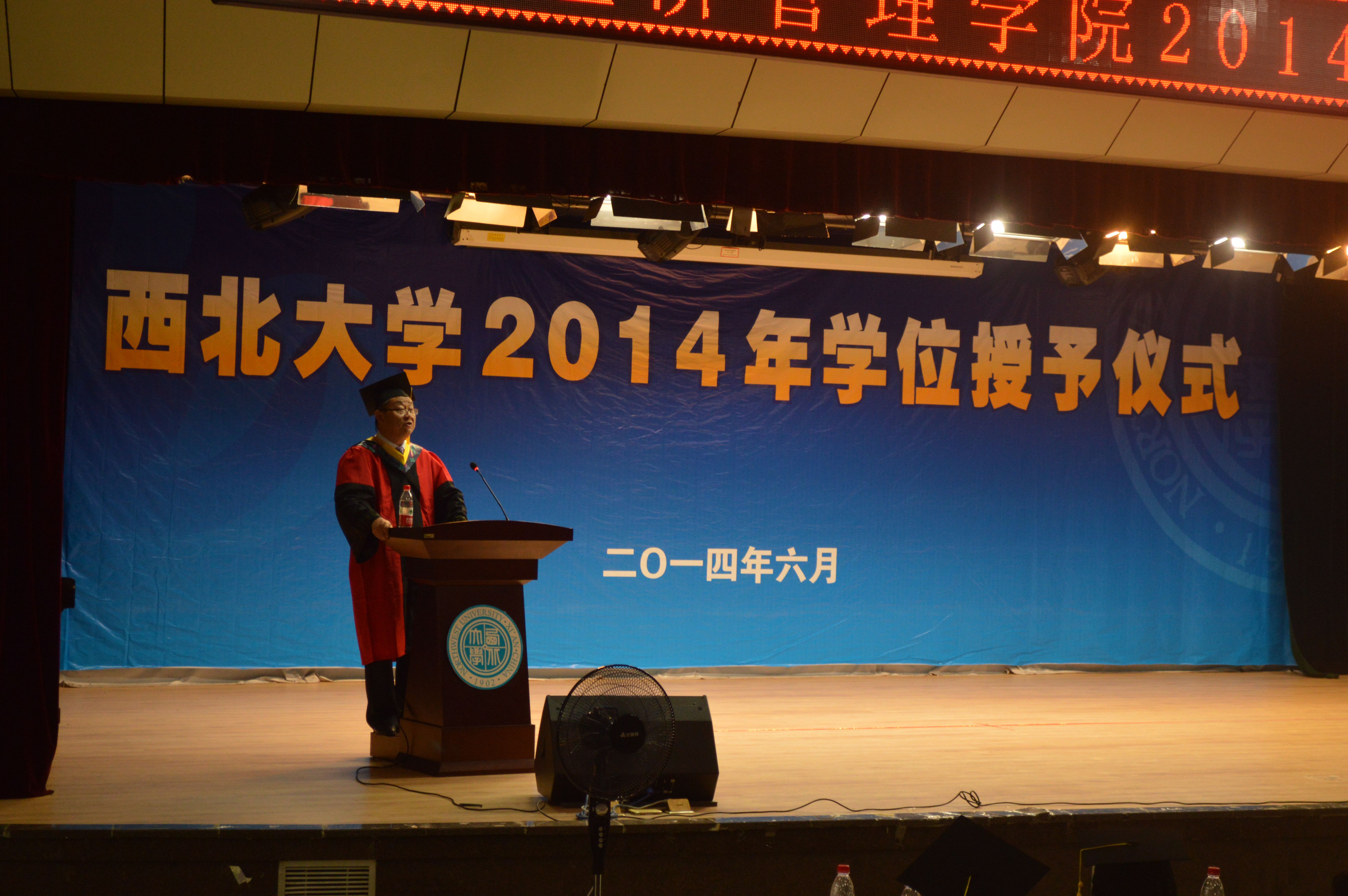 典礼上,yl7703永利集团副院长吴振磊副教授宣读了2014年毕业生人数及学位授予人数, 院长任保平教授为今年毕业的博士毕业生、硕士毕业生授予了学位。副院长惠宁教授、经济学系主任何爱平教授、工商管理系主任安立仁教授、会计学系主任张晓明教授、数理经济与统计学主任茹少锋教授、信息管理与信息系统系主任齐捧虎教授分别为各系本科毕业生授予了学位。