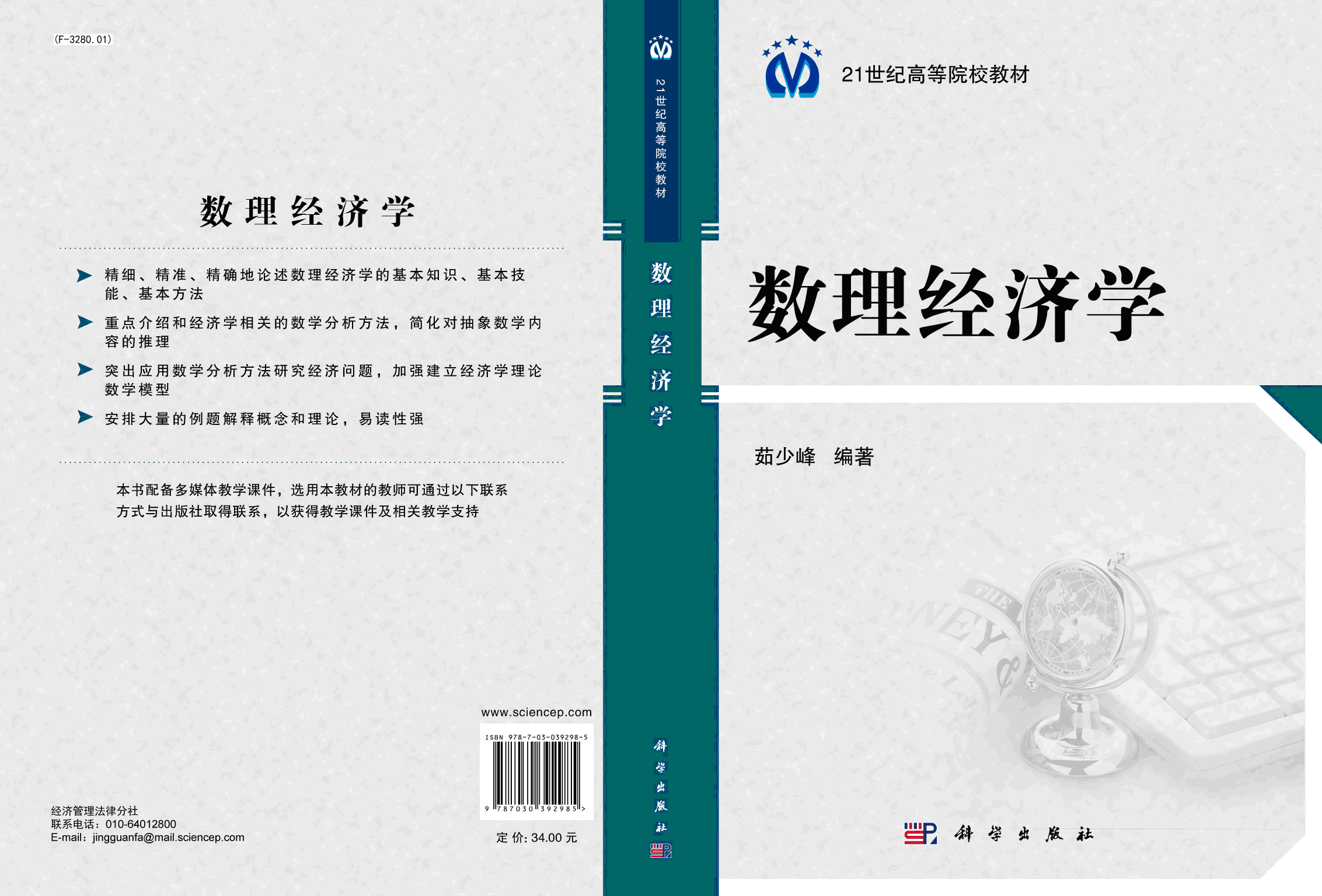 2014年1月,我院数理经济与统计系教师茹少峰教授编著的《数理经济学》教材由科学出版社出版,该书是我院陕西省重点学科理论经济学建设项目的成果,也是数理经济学学科建设方向的成果之一。
