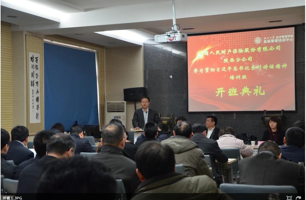2月9—13日,受中国人民财产保险股份有限公司陕西省分公司的委托,我院成功举办了为该公司中高层管理人员开办的“学习贯彻习近平总书记系列讲话精神”专题培训班。
