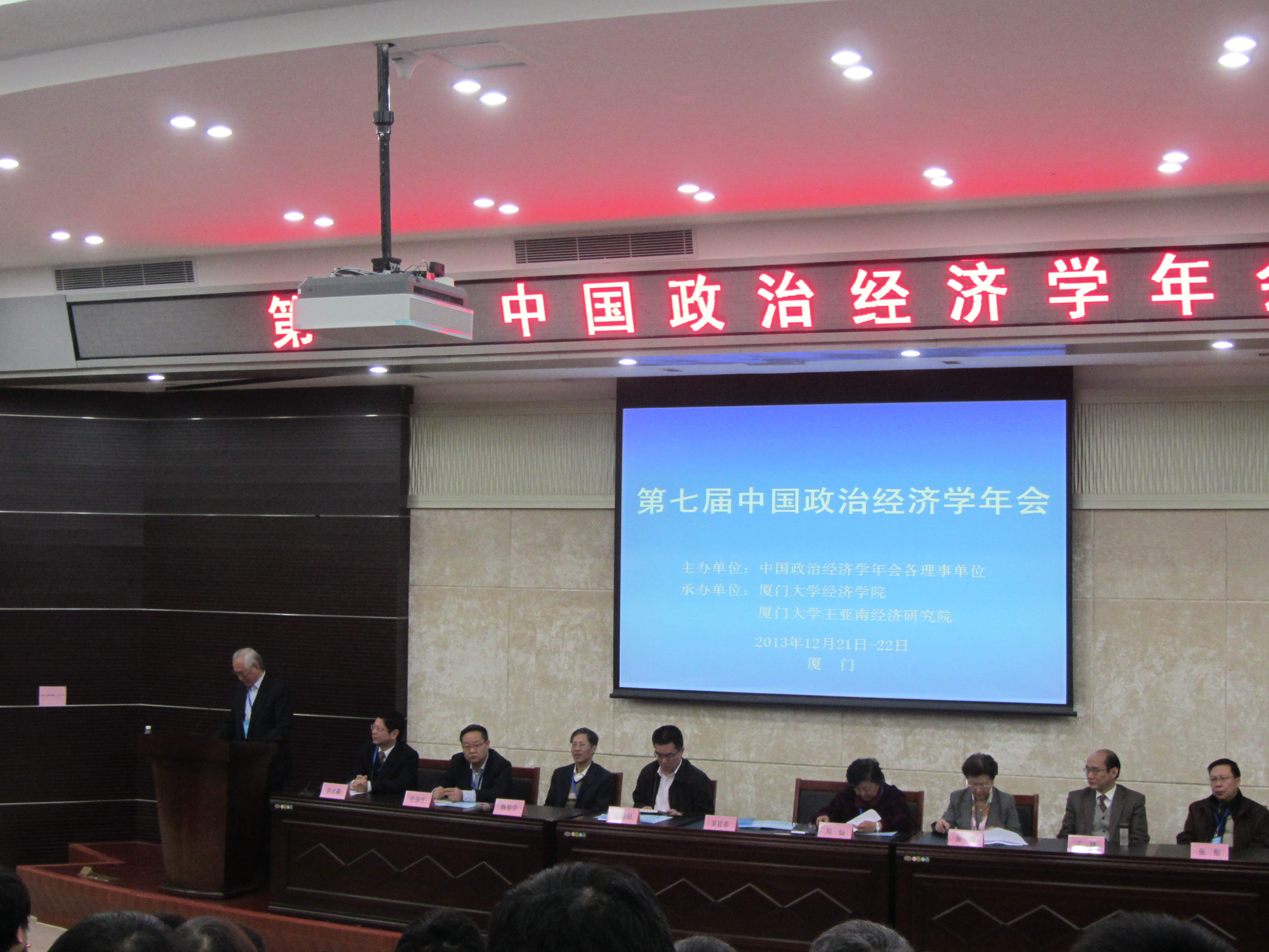 由厦门大学经济学院与王亚南经济研究院承办的2013年第七届中国政治经济学年会,汇集了来自北京大学、清华大学、复旦大学、四川大学等国内高校与中国社会科学院、中共中央党校等科研单位的近200位专家学者。任保平院长主持了开幕式中的大会报告,我院入选本次会议的论文共有6篇。与会者围绕城市化的政治经济学、发展的政治经济学、中国经济的实证分析、中国经济的历史分析、经济民主与收入分配的政治经济学分析、现代资本主义政治经济学、劳动价值论和剩余价值论研究、经济思想史和经济学方法论、制度经济分析,对我国经济发展过程中的热点与难点问题进行了深入的研讨。