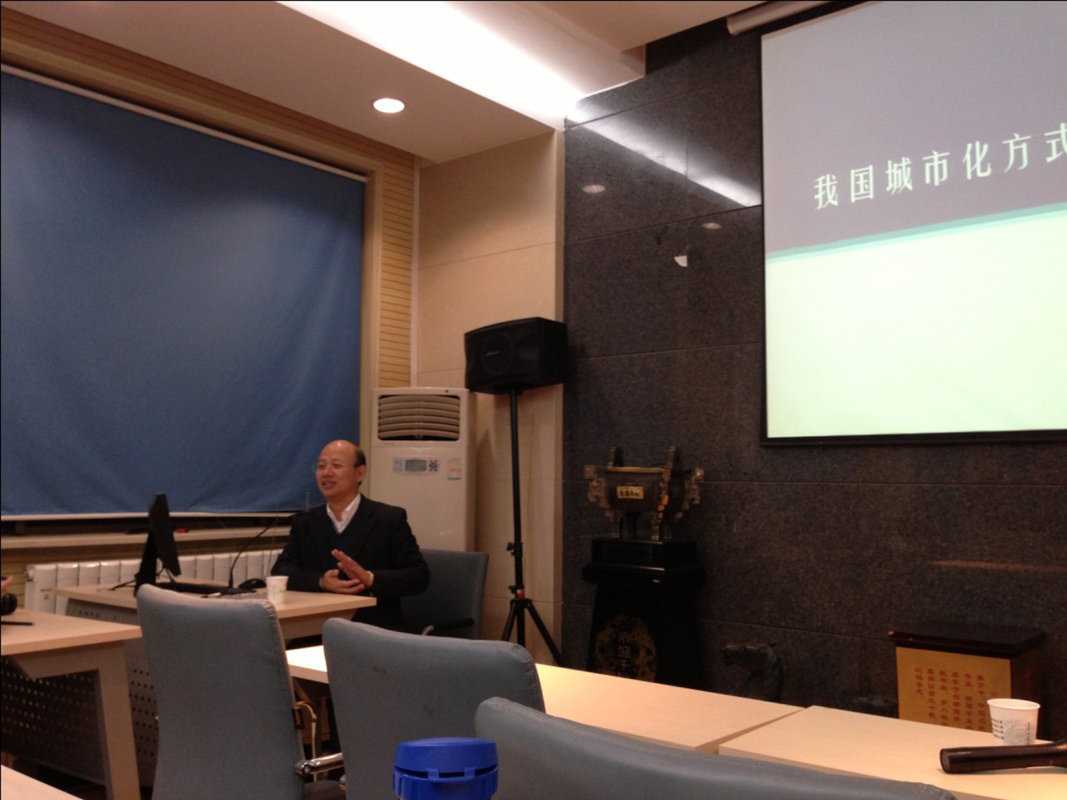杨开忠教授从:(1)中国城市化——经济发展引擎;(2)集中城市化抑或分散城市化;(3)城市化转型等三个方面对中国城市化发展历程及趋势展开系统论述。杨教授提出城市化的核心与内涵在于城市经济人口的密度不断提升,并从人口、土地、基础设施等维度解析了城市化的经济过程、社会过程与空间过程。在此基础上,杨教授分析了我国城市化发展趋势中的集中化力量和分散化力量,分析我国应推进集中式城市化。最后,杨教授从城市化的共同制度建设、互连的基础设施以及差别化干预视角分析了我国发展集中式城市面临的问题。何爱平教授对杨开忠教授精彩的报告做了点评,她指出杨教授从高层次的国家战略对我国城市化发展进行了解读,无论思想性还是理论性对于教师和学生理解中国城市化进程都具有非常强的启发性。