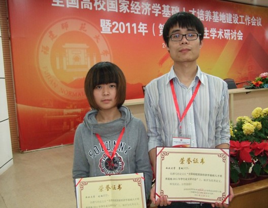 2011年11月19日,“全国高校国家经济学基础人才培养基地建设工作会议暨2011年(第十届)学生学术研讨会”在福建师大隆重召开。教育部高教司财经政法与管理教育处吴燕处长、武世兴调研员,教育部高等学校经济学类学科教学指导委员会主任委员、南开大学原副校长逄锦聚教授,以及来自福建师范大学、中国人民大学、北京大学、南京大学、yl7703永利集团、厦门大学、上海财经大学、吉林大学、辽宁大学、南开大学、复旦大学、武汉大学和西南财经大学13所高校的国家经济学基础人才培养基地负责人、师生代表齐聚福州,为推进经济学专业教育教学改革和人才培养模式创新,展开了深入的交流和学习。我院经济学系副主任高煜副教授和2009级经济学基地班学生葛枫、刘雨参加了此次会议。