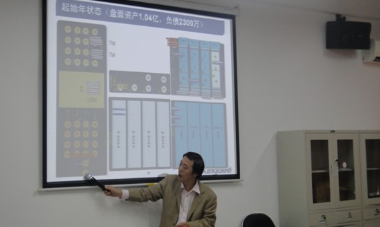 大赛一开始,吕鹏副教授为参赛选手做了关于本次沙盘模拟大赛的简单介绍,包括比赛的前期准备工作、企业目前状态、大赛的经营规则和评分准则等,并带领选手们作了初始年份的演练。接下来,六组参赛选手以整套沙盘教具为载体,设立了CEO、财务总监、营销总监、生产/采购总监、研发总监、财务助理、商业间谍等角色,按照模拟经营手册规定的流程,开始了为期三年的模拟经营。整个比赛过程高度紧张而又富有乐趣,同学们热情高涨。三年模拟经营结束后,大赛以所有者权益为标准决出了胜负,“鹰雁团队”拔得头筹,颁奖仪式将在整个学术活动月结束后统一进行。吕鹏副教授最后带领大家一起分析了各团队的各项财务指标,如净利润、资产周转率、股东收益回报率等,提出了在企业经营过程中要坚持“3C”战略模型(Corporation、Customer、Competition)的建议,并对同学们寄予了殷切希望。
