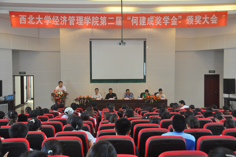 2011年6月24日,我院第二届“何建成奖学金”表彰大会在金海报告厅隆重举行。西安市西三爻村改造建设发展有限公司董事长何建成先生、院党委书记王宝老师、副书记樊涛老师出席了会议,“何建成奖学金”获奖学生和各年级学生代表200多人参加了大会。