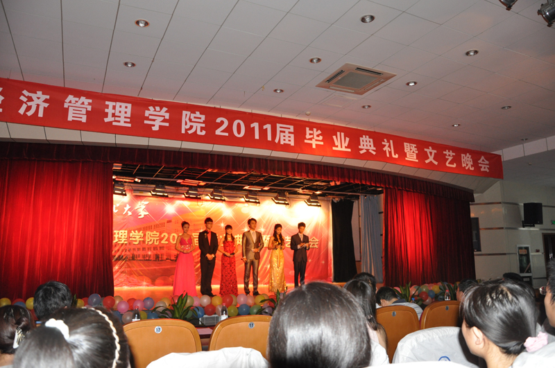 毕业典礼结束后,还进行了精彩的文艺演出。表演同学通过唱红歌、打腰鼓、诗朗诵《经管风华》等多种艺术形式表达了对中国共产党90岁生日的满腔祝福、对老师的衷心感谢和对学院的依依不舍,。