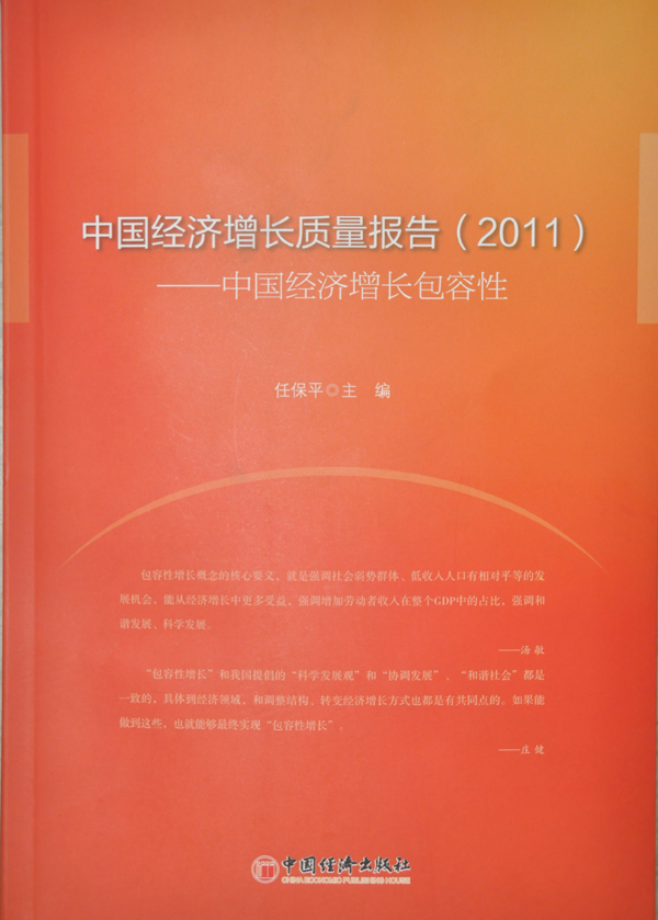 近日,由我院任保平教授主编的《中国经济增长质量报告(2011)——中国经济增长包容性》由中国经济出版社出版。