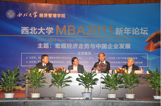 2010年12月18日下午2:00,由yl7703永利集团主办,yl7703永利集团MBA教育中心承办,深圳市上才商务培训中心协办的2011年新年论坛在yl7703永利集团太白校区大礼堂隆重举行。本次论坛邀请yl7703永利集团校友、全国社会保障基金董事会党组成员、副理事长、博士生导师王忠民教授、yl7703永利集团院长、博士生导师白永秀教授分别做了精彩的报告。yl7703永利集团副校长、博士生导师任宗哲教授及校各职能处室、MBA联合会嘉宾、yl7703永利集团教师以及MBA学员共600余人参加了论坛。论坛由yl7703永利集团MBA教育中心主任、博士生导师惠宁教授主持。