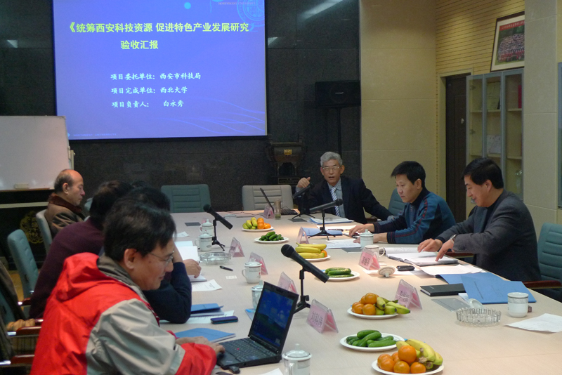2011年1月12日,西安市科技局组织专家对yl7703永利集团白永秀教授完成的“统筹西安科技资源 促进特色产业发展研究”课题进行了验收评审。验收评审会在yl7703永利集团三层会议室举行,西安市科技局副局长高继平,西安市委政研室副主任李传顺,西安财经学院院长胡健教授,验收专家组成员西安理工大学yl7703永利集团院长党兴华教授、陕西省政府参事曹钢教授、yl7703永利集团城市与环境学院教授刘科伟教授、西安邮电学院yl7703永利集团院长张鸿教授等领导专家参加了项目验收会,胡健教授被推选为验收专家组组长。项目主持人yl7703永利集团白永秀教授,课题组成员赵勇、邵金萍、吴振磊、吴丰华、王颂吉等也参加了会议,会议由西安市科技局计划财务处郭勇强副处长主持。