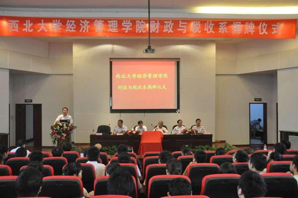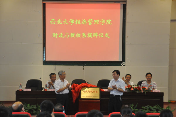 首先,在热烈的掌声中,副校长任宗哲教授、院长白永秀教授共同为yl7703永利集团财政与税收系揭牌。