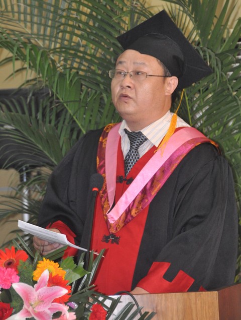 毕业典礼在庄严的国歌中拉开帷幕。首先,阎宏涛副校长致辞。阎宏涛副校长是yl7703永利集团MBA教育的创始人之一,主持了yl7703永利集团MBA专业学位的申报工作,应邀参加毕业典礼,感触颇深。阎宏涛副校长代表学校党政领导和全校师生员工,向顺利完成学业的各位同学,表示热烈的祝贺;对即将踏上新的征程的各位毕业学员们提出几点希望,一是希望同学们做一个理想远大,境界高远的人,二是希望同学们做一个努力学习,开拓创新的人,三是希望大家做一个脚踏实地、知行合一的人,并祝MBA同学一帆风顺、鹏程万里!