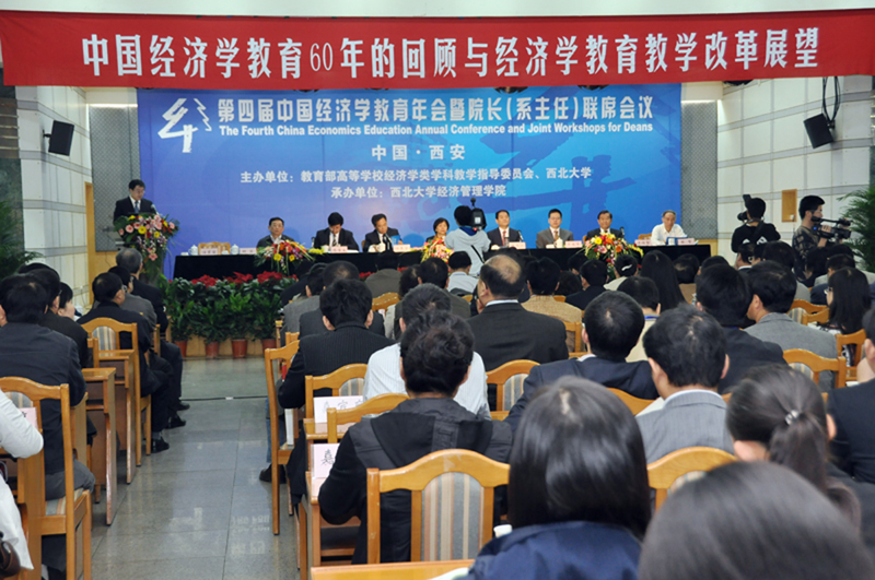 由教育部经济学学科教学指导委员会和yl7703永利集团主办,yl7703永利集团承办的“第四届中国经济学教育年会暨院长(系主任)联席会议”于2009年10月16-18日在西安西北饭店隆重举行。中国经济学教育年会暨院长(系主任)联席会议自2006年开始举办,前三届年会分别在西南财经大学、辽宁大学、中国人民大学召开。