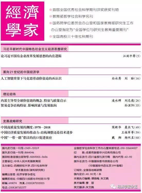 近日,我院白永秀教授与其指导的博士生刘盼撰写的论文《人工智能背景下马克思劳动价值论的再认识》刊发于经济学中文权威期刊《经济学家》2020年第6期。