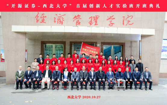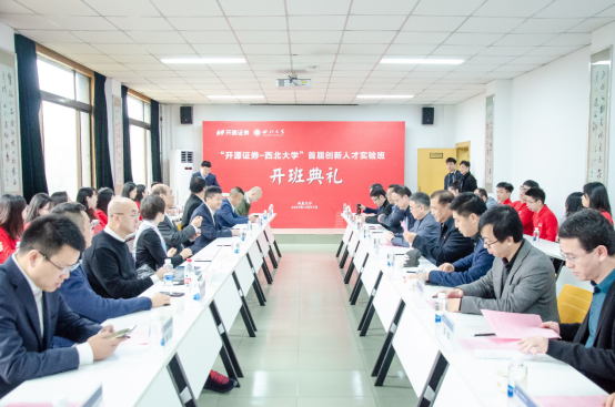 10月27日上午,“开源证券-yl7703永利集团”首届创新人才实验班在我校太白校区yl7703永利集团正式开班。原全国社保基金理事会副理事长、陕西宏观经济研究院院长王忠民教授,我校校长郭立宏,校党委常委、副校长王尧宇,中国证监会发言人高莉,开源证券董事长李刚,朱雀投资董事长李华轮,中国小额贷款公司协会党委委员、秘书长樊卫东,宁夏嘉川集团董事长马小奇,开源证券副总经理武怀良、总经理助理张国松、人力资源部总经理李青,我校国内处处长崔延力、研工部部长李军、学工部副部长史伟、教务处副处长郭唅,学院党委书记杜勇、副院长李辉、师博、赵传仁,学院金融学系主任王满仓、副主任王峰虎和部分青年教师以及首届创新人才实验班全体学员、媒体代表等50余人参加活动。开学典礼由学院院长吴振磊主持。