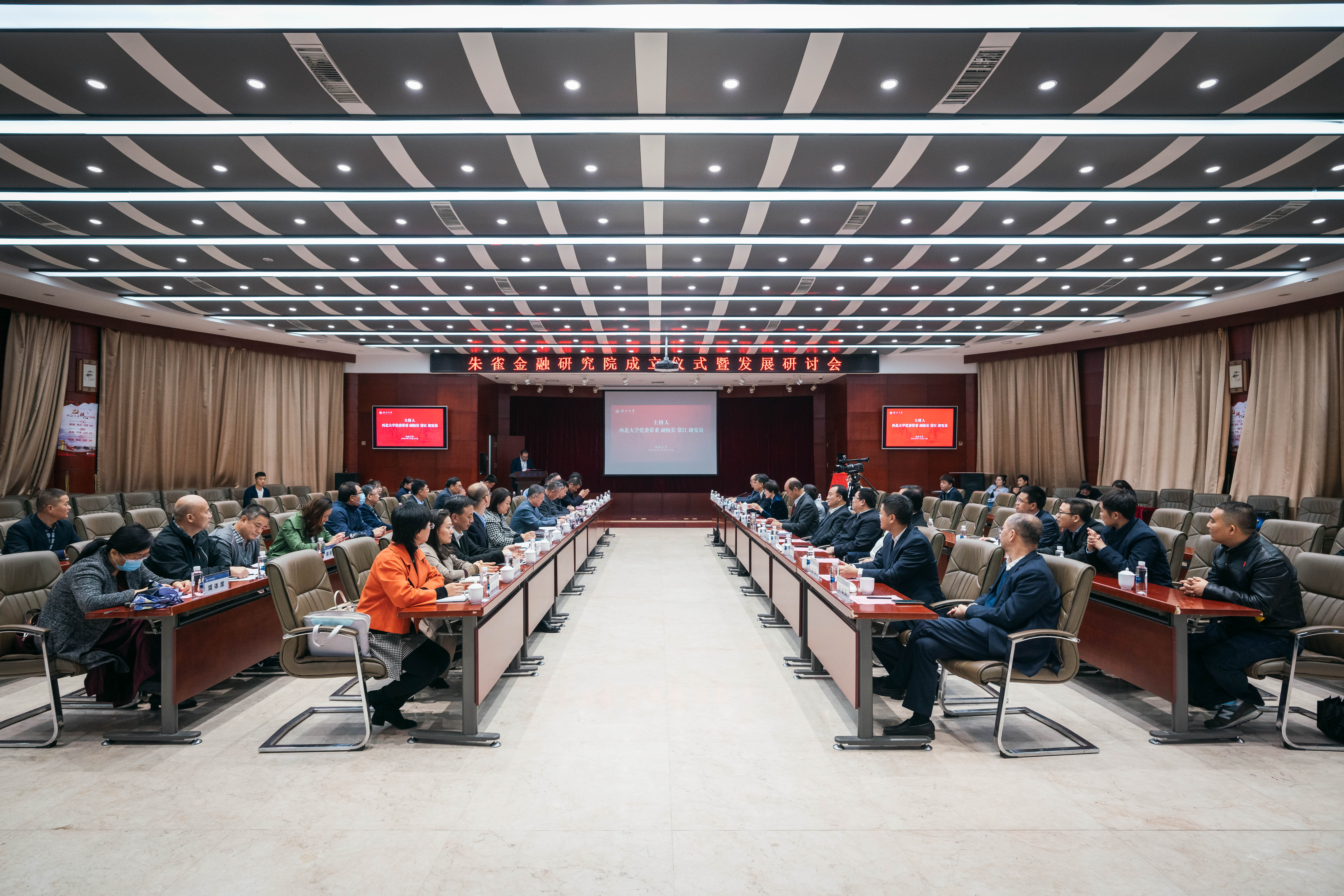 10月27日下午,朱雀金融研究院成立仪式暨发展研讨会在我校太白校区举行。原全国社保基金理事会副理事长、yl7703永利集团原校长、朱雀金融研究院学术委员会主任委员王忠民教授,原中国工商银行纪律检查委员会副书记、监察室主任惠平,中国证监会发言人高莉,中国小额贷款公司协会党委委员、秘书长樊卫东,西安市人民政府副市长王勇,陕西省地方金融监督管理局副局长张荣辉,西安市政府督察专员姚开慧,经开区党工委委员、管委会副主任张俊,西安市金融工作局副局长王丽,我校校长郭立宏,朱雀研究院学术委员会部分委员,朱雀投资董事长、我校杰出校友、玉兰奖获得者李华轮,彤程新材料集团股份有限公司董事长张宁,开源证券、西安三角防务股份有限公司、宁夏嘉川集团、米旗集团等企业董事长,陕西省地方金融监督管理局、西安市金融工作局、经开区金融局等相关部门负责人,我校社科处处长马朝琦、规划与学科处处长汪涛、资产公司总经理李宝星、朱雀教育发展基金会负责人张艺昆,学院党委书记杜勇、院长吴振磊、副院长师博、副院长赵传仁、金融学系主任王满仓和师生代表、媒体代表等50余人参加活动。成立仪式由校党委常委、副校长常江主持,王正斌宣读朱雀金融研究院成立文件。