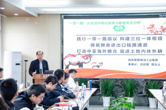 聘任仪式结束后,贾合义教授为我院师生作了题为《“一带一路”企业运作模式探索与粮食安全分析》的主题报告。