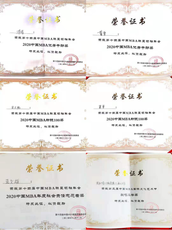 本次活动中,我院荣获“十佳特色商学院”荣誉称号,吴振磊院长获“MBA院校卓越领袖奖”,MBA学员呼延博当选第十四届中国MBA联盟顾委会主任,曹虹获“中国MBA十大成就奖”李浩、董雪获“中国 MBA 优秀干部”奖,朱文艳、董雪获“中国MBA新锐100奖”,王义雄获“社会责任个人奖”、“社会责任志愿者”奖和“歌唱二等奖”,这既是对获奖学生的肯定与鼓励,更是对我校MBA教育项目的认可。本次年会与论坛的交流学习,既是顺应新时代发展的号召与发展需求,更是对商科教育发展,MBA人的成长路径与未来选择、行为的思考和探索,我们期待更多优秀的西大MBA学员在中国MBA联盟的舞台上绽放精彩。