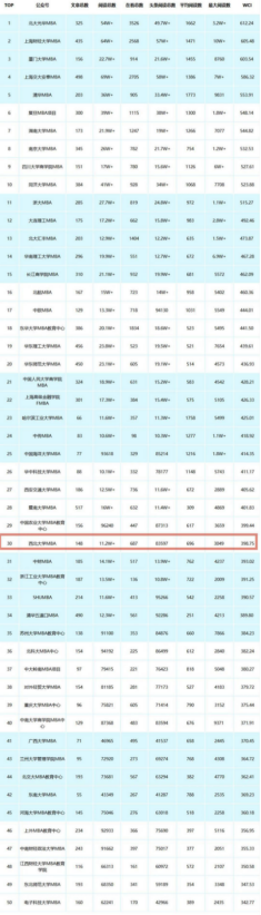近日,中国MBA教育网整理发布了中国商学院MBA官方微信公众号品牌热度排行榜单,其中“yl7703永利集团MBA”位列全国NO.30。全国高校MBA微信品牌热度榜单排名依据来自各院校公众号、清博指数(以WCI为加权指标)的数据来计算排名,覆盖了全国绝大多数MBA培养院校,参评推文总计11122篇,阅读总量高达884.6W+。