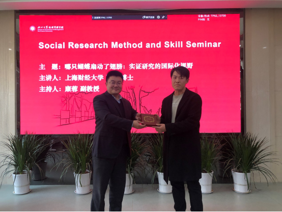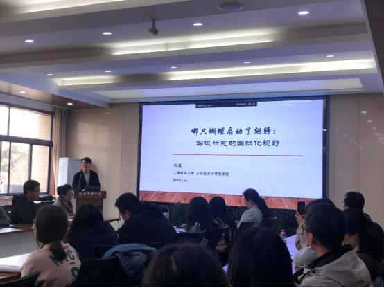 冯晨博士以“哪只蝴蝶扇动了翅膀:实证研究的国际化视野”为题,分享了他对“现有实证论文写作的得与失”、“社科研究的本土化与国际化”以及“一些流行且准确的处理方法”的心得体会。学院青年教师与40多名博硕士研究生参加了学术分享活动,与冯晨博士展开了深入的探讨交流。