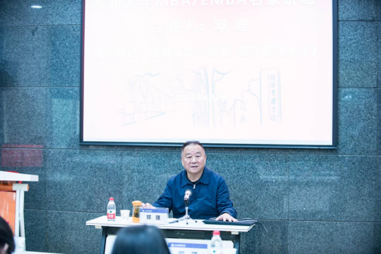 2021年4月9日下午,我院特邀省十届人大常委会副主任邓理为我院MBA/EMBA学生作题为《激活第一资源,提升管理水平》的专题报告。校党委常委、副校长张远军出席并致辞。学院党委书记杜勇主持报告会。