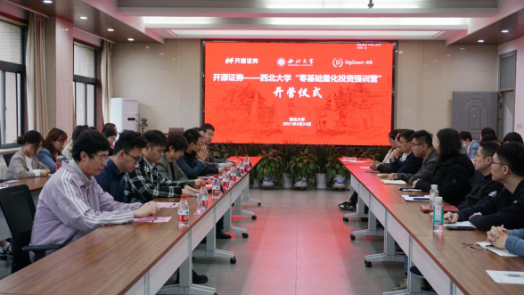2021年4月24日上午,开源证券、yl7703永利集团、点宽学院共同举办的“零基础量化投资强训营”顺利开营。开源证券总经理助理张国松,yl7703永利集团副院长师博,开源证券人力资源部总经理助理刘云,yl7703永利集团金融系副主任王峰虎,深圳点宽网络科技有限公司培训教师蔡景波、张新福、董宇,以及开源证券的30名参培员工、“开源证券-yl7703永利集团”创新人才实验班的15名学员共同参加了开营仪式。