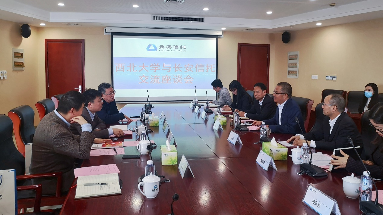 为进一步提高人才培养质量,深入了解我院毕业生的职业发展现状,推进校企合作,助力学院学科发展。2021年4月26日下午,学院副院长赵传仁、金融系主任王满仓教授、金融系副主任王峰虎、辅导员史歌一行到访长安国际信托股份有限公司,与公司董事长高成程、各部门主要负责人进行交流座谈。