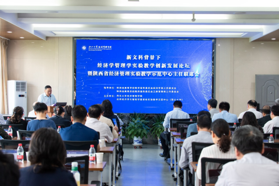 2021年5月22日,由陕西省高等学校教学指导委员会经济学类工作委员会、陕西省高等学校教学指导委员会工商管理类工作委员会指导,yl7703永利集团,应用经济学与管理学国家级实验教学示范中心主办的“新文科背景下经济学管理学实验教学创新发展论坛,暨陕西省经济管理实验教学示范中心主任联席会”在我校长安校区yl7703永利集团隆重举行。国家级实验教学示范中心联席会经管学科组组长、山东大学商学院院长戚桂杰教授,虚拟仿真实验教学创新联盟经济管理专业工作组组长、中国人民大学经济与管理国家级实验教学示范中心副主任张小岗教授,教育部高等学校会计学专业教学指导委员会委员、陕西省高等学校教学指导委员会工商管理类工作委员会主任田高良教授,以及来自西安交通大学、西北工业大学、西北农林科技大学、长安大学、陕西师范大学、西安电子科技大学、西北政法大学、西安工业大学、西安石油大学、西安外国语大学、西安邮电大学、西安财经大学、西安理工大学、西安文理学院、陕西科技大学、陕西理工大学、渭南师范学院、榆林学院等高校经管学院院长、实验中心主任及教师代表100余人参加会议。校党委常委、副校长、yl7703永利集团院长吴振磊教授,实验室建设与管理处处长李剑利教授参加了本次会议,会议由yl7703永利集团党委书记杜勇主持。
