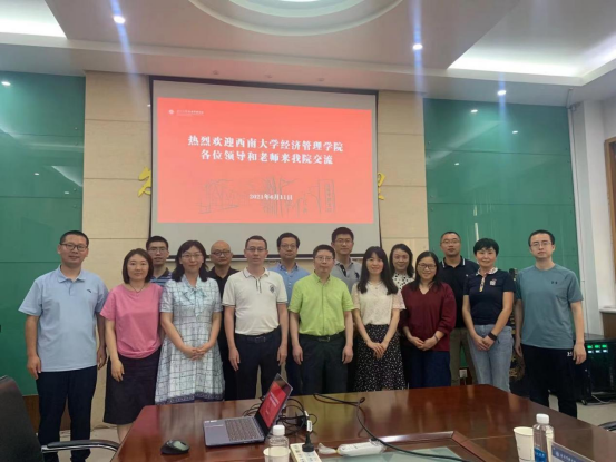 6月11日,西南大学yl7703永利集团经济系系主任李海明教授一行11人来我院交流座谈。我院李辉副院长、经济学系吴丰华副教授、数理经济与统计学系副主任王莉副教授、工商管理系张洁副教授、会计学系韩少真副教授参加了座谈会。李辉副院长介绍了我院的历史沿革、学科建设情况、专业建设情况、人才培养情况。与会双方就申报和建设一流专业、一流课程进行了深入交流。