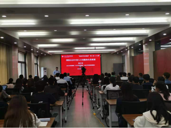黄少安教授首先从六个角度阐述了报告的主题:(1)如何认识人口总量和密度(2)如何认识人口结构问题(3)人口红利和劳动力红利消失了吗?(4)老龄潮还是老龄化?生育政策回顾;(5)如何判断现阶段的生育意愿?因为富了而有保障还是相反?(6)总量控制的必要和结构优化的多种方式选择。结合上述问题与内容,黄少安教授通过国内外数据及中国历史背景与资料进行了深入的分析与解读。黄少安教授认为当下中国人口状况可总结为三点:(1)中国的人口总量巨大,且人口密度过高;(2)人口素质、人口地区分布以及年龄结构等方面仍不够合理;(3)中国的劳动力红利并未消失,劳动力市场处于供过于求的状态。最后,黄少安教授分享了自己在生育指标优化配置方面的最新研究成果,并与在场师生进行了深入的交流。