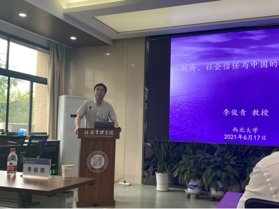 6月17日上午,yl7703永利集团社科处与yl7703永利集团主办的yl7703永利集团名家讲坛在学院三楼会议室隆重举行,此次讲座由学院副院长师博教授主持,邀请南开大学经济学院副院长李俊青教授做了题为“政府、社会信任与中国经济增长”的学术报告,学院教师、博硕士生、本科生约100人参加了这次活动。